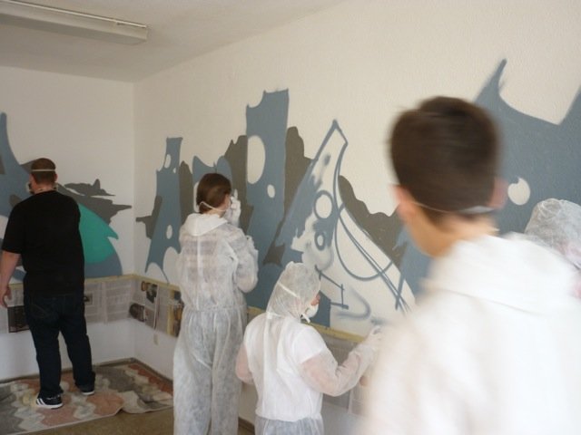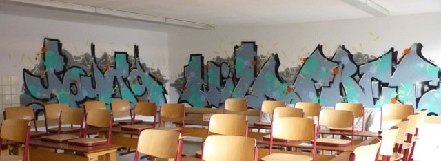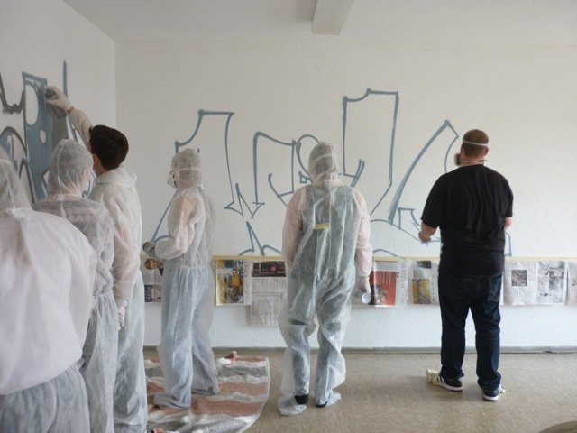 Zuvor hatten die Schülerinnen und Schüler bei Marcel Venemann bereits an einem Workshop zum Thema Graffiti teilgenommen; auch deshalb wirkt das Graffiti in der Klasse jetzt so professionell. Die Finanzierung trugen die Schüler zum größten Teil selbst, doch auch eine kleine Geldspende der Deutschen Bank trug zum Gelingen des Projekts bei.
