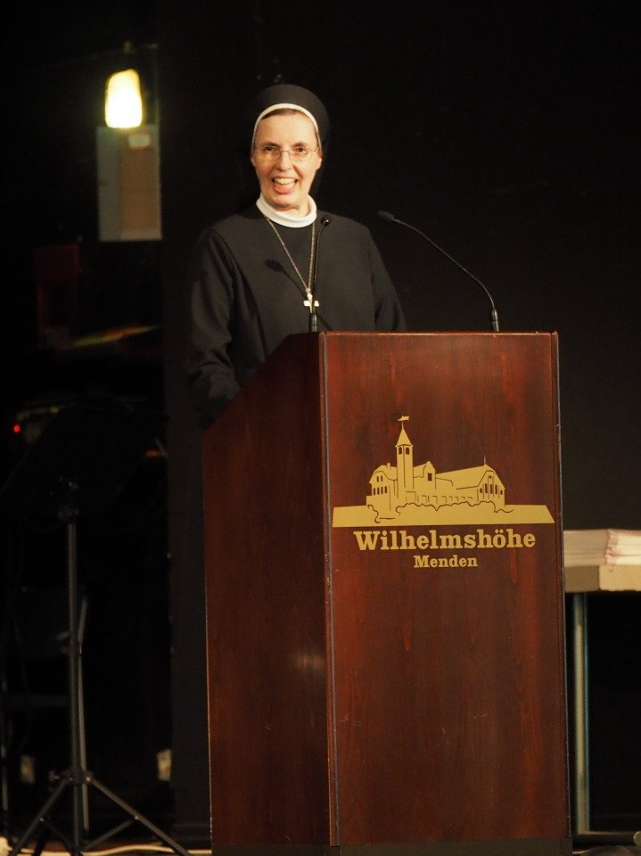Die Begrüßungsrede hielt Schwester Maria Thoma in einer Doppelfunktion, nämlich letztmalig in ihrer Rolle als Schulleiterin, erstmalig in ihrer neuen Funktion als Generaloberin des Ordens. Auch Vertreter der Schüler- und Elternschaft gratulierten den Abiturienten und sprachen Eltern und Schule Dank aus (siehe stellvertretend die folgenden Fotos). Eine besondere Überraschung gab es anschließend: An die offiziellen Reden, die im Programm angekündigt waren, schloss sich ein Beitrag von Herrn Dr. Maler an. Dieser verlas einen Brief, der von den Namensgebern des Abimottos, Joko und Klaas, an die Abiturientia gerichtet war.