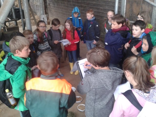 So fanden die Schülerinnen und Schüler heraus, dass auf dem Hof ca. 200 Rinder und Milchkühe leben, dass die Milch der Kühe an die Firma Campina (Landliebe) verkauft wird, und dass der Bauer für einen Liter Milch rund 30 Cent bekommt.