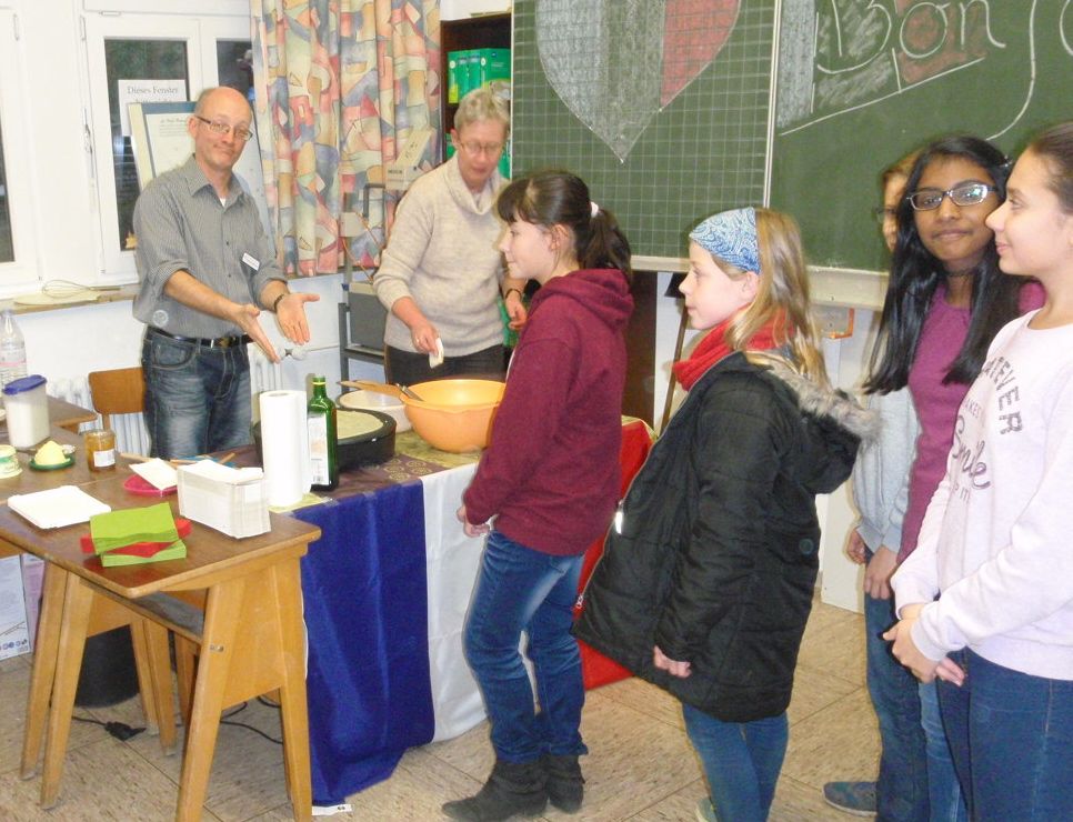 In der letzten Woche nutzten wieder viele Familien die Gelegenheit, das Walburgisgymnasium und die Walburgisrealschule kennen zu lernen. Während unsere Fünftklässler als kleine Guides den Kindern die Highlights unserer Schulen zeigten, informierten Lehrkräfte die Eltern über die Angebote und Konzepte der einzelnen Fächer sowie der Hausaufgabenbetreuung. Diese wurden mit Unterstützung der Schüler/innen gewohnt kurzweilig präsentiert: Sie erklärten Experimente in den Naturwissenschaften, Musikinstrumente, die Sprachen boten erste Rollenspiele mit kleinen Dialogen an, dazu duftete es köstlich nach französischen Crêpes, die Deutschlehrer/innen präsentierten das Methodenkonzept, in der Turnhalle gab es Spiele für die Kinder und in der Aula vermittelten Proben der Creativity-in-English-Gruppe der Sechstklässler und auch des Unterstufenchors einen Einblick in das lebendige Kulturangebot unserer Schulen. Natürlich präsentierte sich auch die Roboter-AG, die durch zahlreiche vordere Wettbewerbsplatzierungen immer wieder von sich hören lässt.