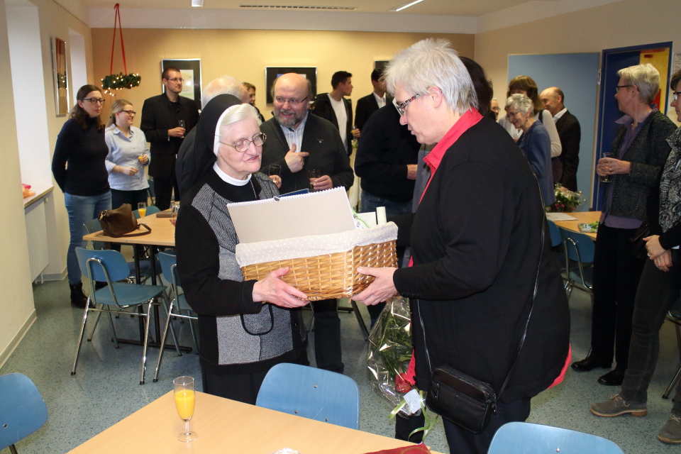 In festlicher Atmosphäre und im Kreise von Lehrkräften, ehemaligen Lehrkräften und Familienangehörigen wurde am letzten Ferientag der 85. Geburtstag unserer Pfortenschwester Burkhardis gefeiert. Viele Gratulanten waren gekommen, um ihr Gesundheit und Gottes Segen zu wünschen und natürlich auch die Hoffnung auszudrücken, dass sie noch lange aktiv sein möge.