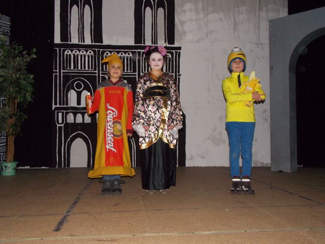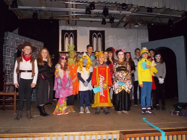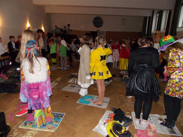 Die Klassenpaten hatten eine lustige Party in der Aula organisiert. Es ging um 14 Uhr mit Musik und Tanz los: Stopptanzen, Zeitungstanz und Polonaise brachten alle ins Schwitzen. Weiter ging es mit einer Kostümschau und der Prämierung der besten Kostüme. Die drei Gewinner bekamen Cafeteria-Gutscheine, aber auch die anderen gingen nicht leer aus, denn sie durften sich aus einer großen Süßigkeitentasche bedienen. Danach ging es auf die Bühne: Verschiedene Gruppen führten kleine Sketche auf. Darin ging es um zwei Mütter auf dem Spielplatz, einen SEK-Einsatz und, wen wundert’s, verschiedene Szenen aus dem Schulalltag. Bis die Eltern ihre Kinder gegen 17 Uhr abholten, gab es noch viel Musik zum Mitsingen und zum Tanzen.