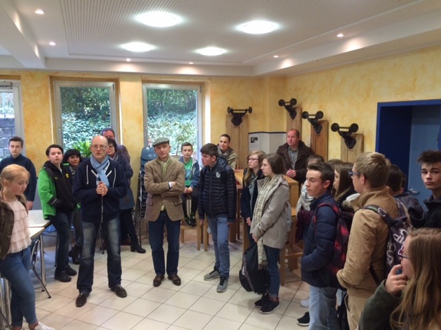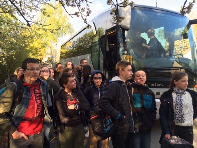 33 Schülerinnen und Schüler kamen gestern Abend in Begleitung ihrer Lehrerinnen und Lehrer glücklich in Menden an und wurden von ihren deutschen Gastgebern, 18 Schüler/innen der 8. Klassen und 14 Schüler/innen der 7. Klassen, freudig empfangen. Schulleiter Dr. Maler und der betreuende Lehrer, Timon Großerhode, begrüßten die Gäste aufs Herzlichste und drückten ihre Freude darüber aus, dass dieser Austausch mit dem Collège Immaculée Conception in St. Hilaire du Harcouet, einem kleinen Ort in der Normandie, nun schon seit 42 Jahren stattfindet. Als die deutschen Gastgeber ihre Austauschpartner endlich begrüßen konnten, zeigte sich, dass sie das französische Begrüßungsritual, „faire la bise“, also Umarmung und Küsschen auf die Wange, bestens beherrschen.