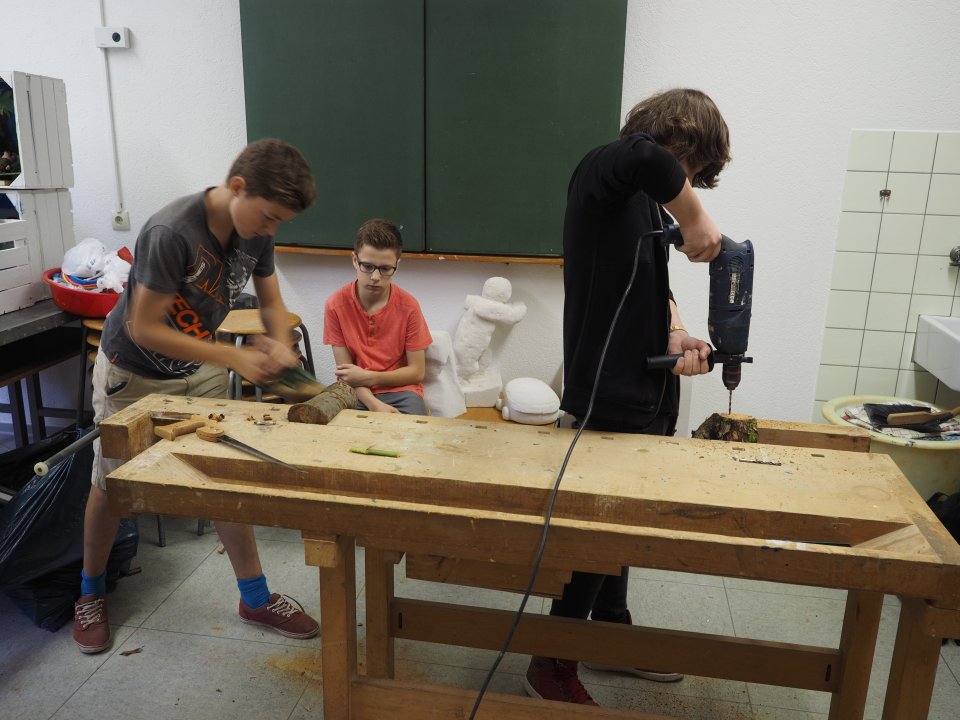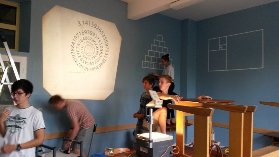 Lackierarbeiten (Foto: C. Scholz/SMMP)Diejenigen Schüler, die mit den eigentlichen Handwerksarbeiten aus Platzgründen nichts zu tun hatten, wurden in rund 30 verschiedenen Projekten beschäftigt, die zum größten Teil ebenfalls zur Verschönerung der Schule beitragen sollten. So wurden z.B. Kunstwerke erstellt, die im Park und im Gebäude an passenden Stellen aufgestellt wurden, wuchernde Sträucher gerodet und neue Beete angelegt. Eine in grauen Vorzeiten angelegte Kräuterspirale wurde reaktiviert, ein maßstabsgerechtes Planetenmodell entworfen, neue Bänke für den Schulhof gebaut, und vieles mehr.