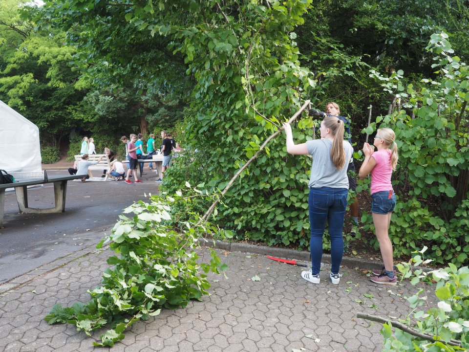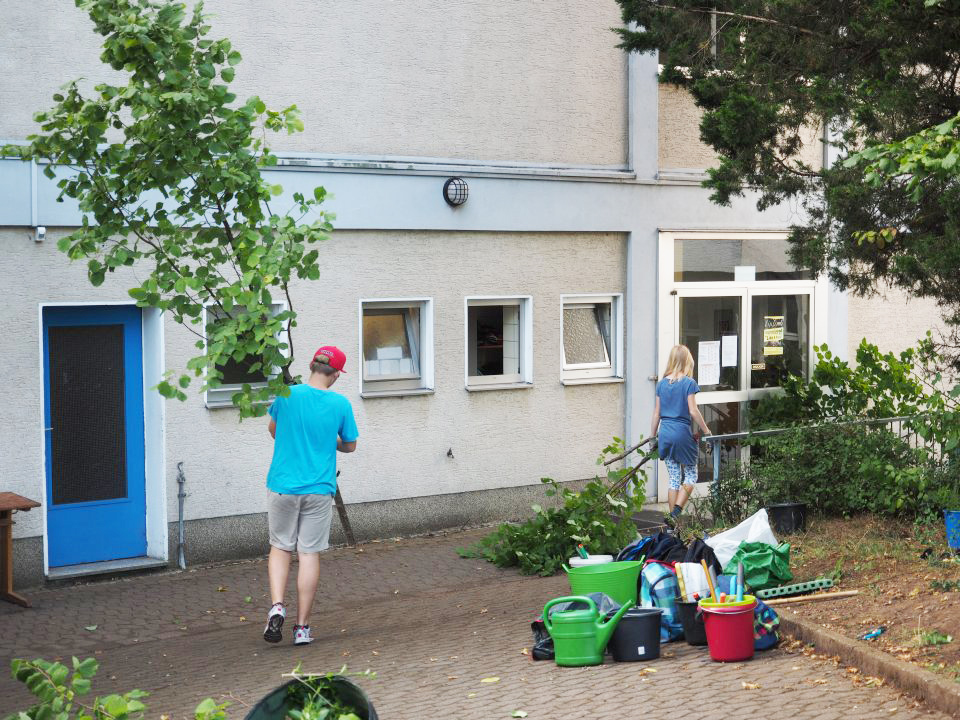 Freude am praktischen Arbeiten (Foto: C. Scholz/SMMP)Und so kam es, dass sowohl im Gebäudeinneren als auch um die Schule herum die Heinzelmännchen (und -weibchen!) ans Werk gingen: