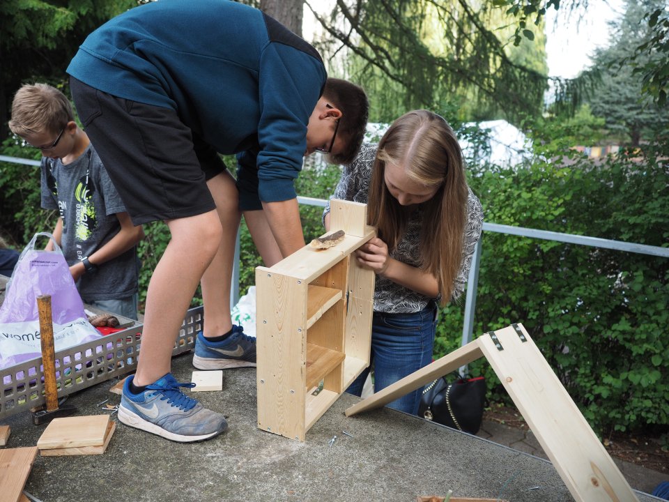 Zusammenbau des Insektenhotels (Foto: C. Scholz/SMMP)