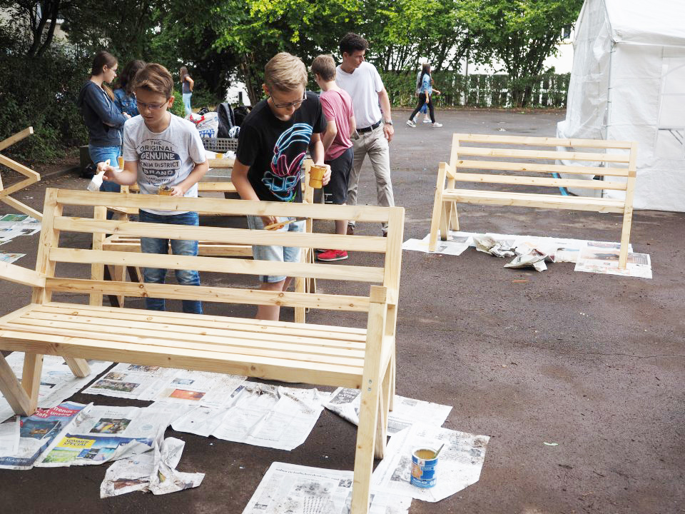 Selbstgefertigte Bänke für den Schulhof (Foto: C. Scholz/SMMP)