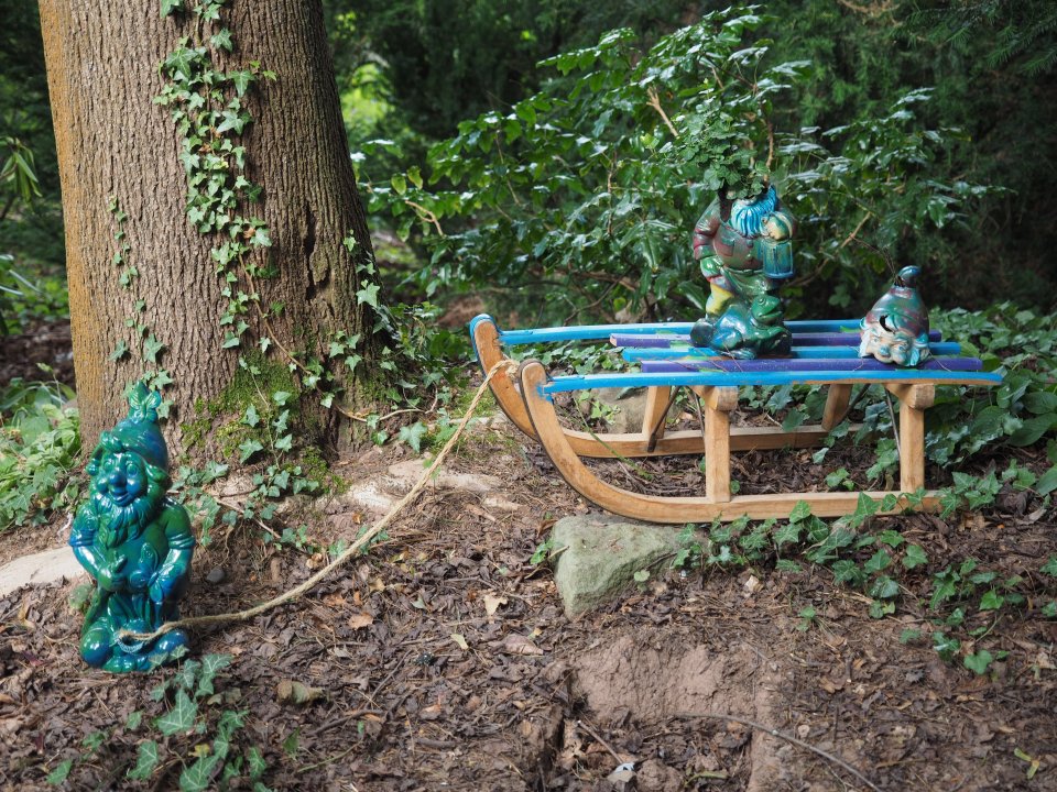 Schlittenfahrt mit (geköpften) Gartenzwergen (Foto: C. Scholz/SMMP)