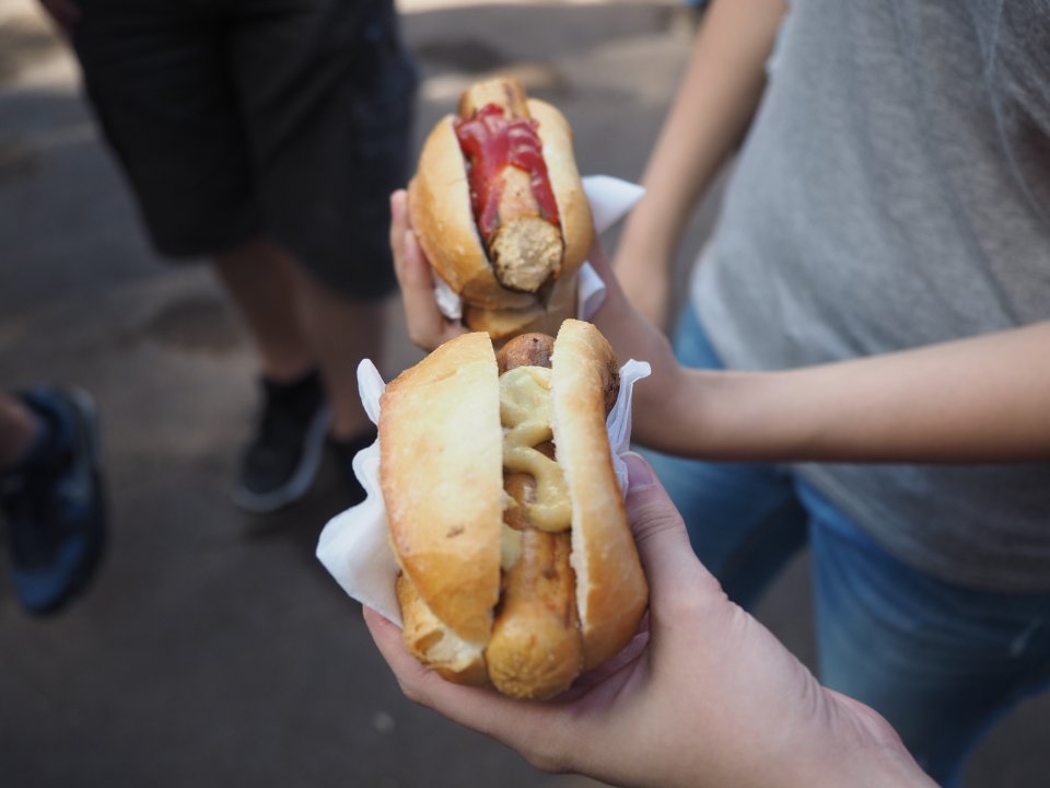 Zwei (fleisch-)arme (Tofu-)Würstchen (Foto: C. Scholz/SMMP)