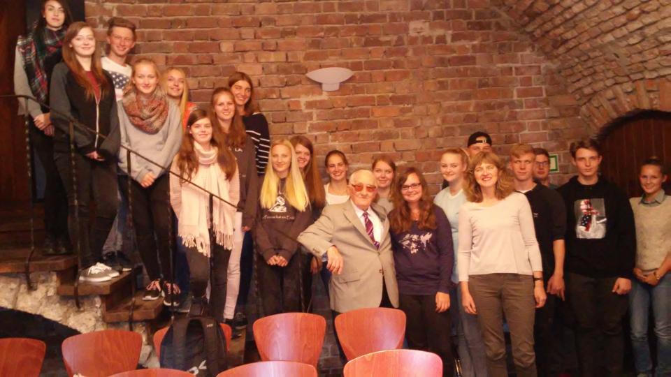 Der Leistungskurs Deutsch in Begleitung von Frau Lügger und Herrn Lause übermittelt uns herzliche Grüße von seiner Studienfahrt nach Krakau. Das Wetter erfordert zwar „Schirm und Schal“, aber die Sehenswürdigkeiten Krakaus und die Begegnung mit Zeitzeugen (heute z.B. ein Gespräch mit dem Auschwitzüberlebenden Herrn Tendera) lassen diesen Aspekt schnell in den Hintergrund treten.