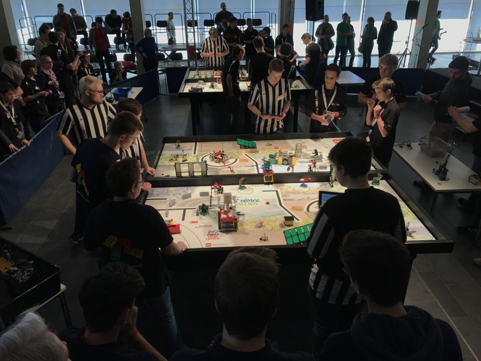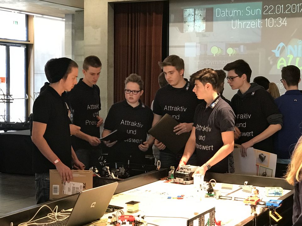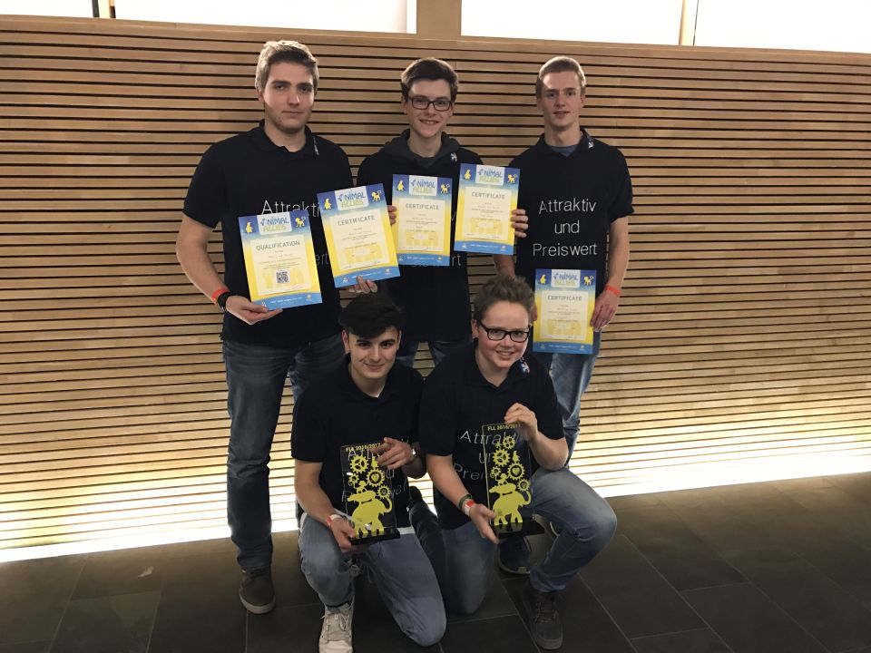 Das Daumendrücken hat sich gelohnt: Am Sonntag hat unser Roboter-Team „AttraktivundPreiswert“ erneut einen grandiosen Sieg im FLL-Halbfinale gefeiert. Nachdem das Robot-Game dieses Mal nicht ganz optimal lief, musste vor der Siegerehrung ordentlich gezittert werden. Es ging schließlich um den Einzug in das Finale am 03. und 04. März in Regensburg. Die Freude über den dritten Platz im Teamspiel, den zweiten Platz für den Forschungsvortrag und den ersten Platz im Robot-Design war bereits groß und die Hoffnungen auf einen Einzug ins Finale stiegen wieder. Durch die sehr guten Leistungen in den anderen Kategorien war am Ende die Sensation perfekt – der Gesamtsieg! Nun bleibt ein guter Monat Zeit um alle Vorbereitungen für das Finale im März zu treffen.