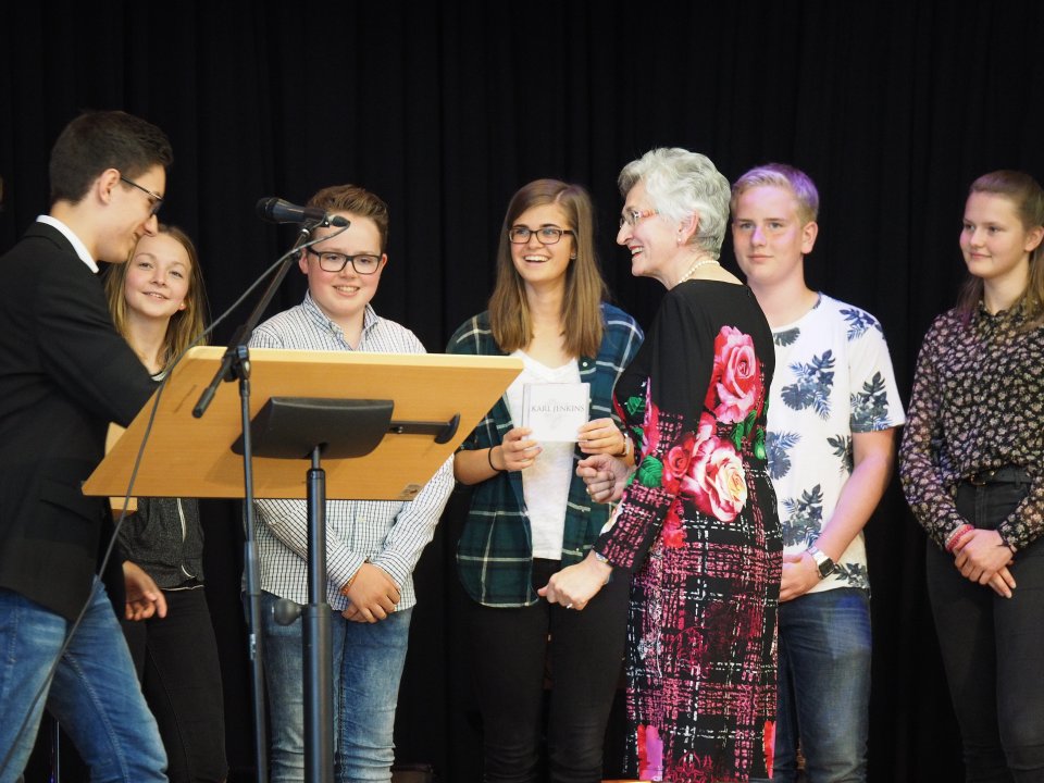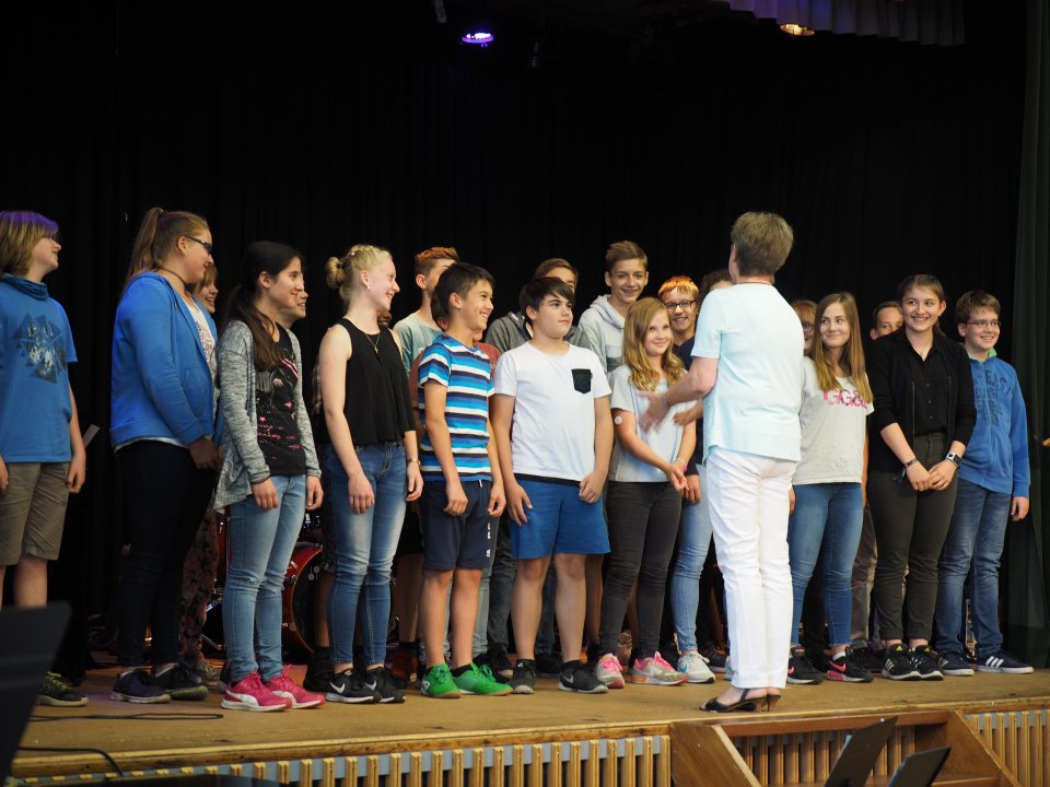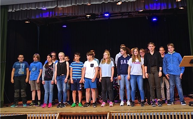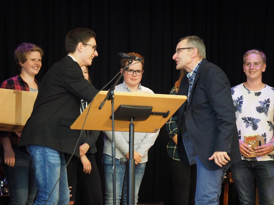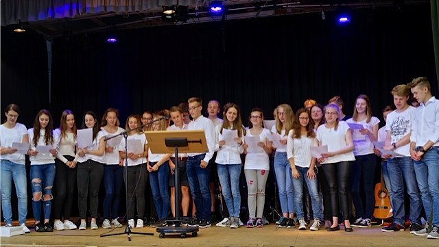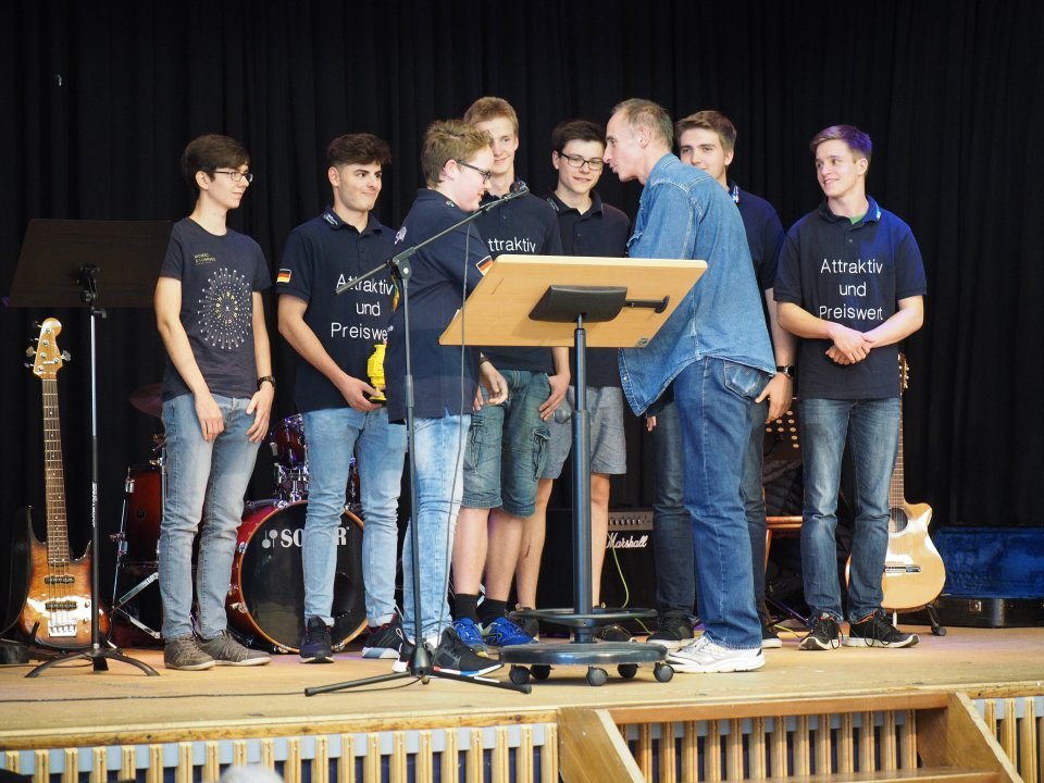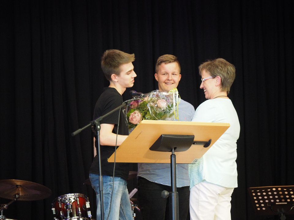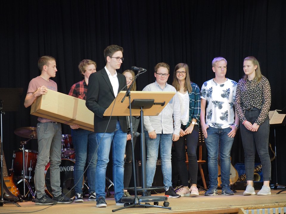 Zur musikalischen Begleitung trugen die Kammermusik-AG sowie das Lehrer-Ensemble Menden Jazz (am Schlagzeug verstärkt durch den Abiturienten Nils Winkler) bei, außerdem bedankten sich einzelne Klassen mit selbst gedichteten Liedern bei ihren nun ehemaligen Lehrkräften.