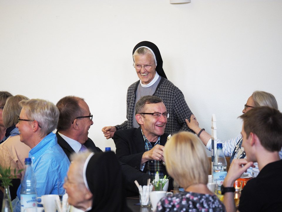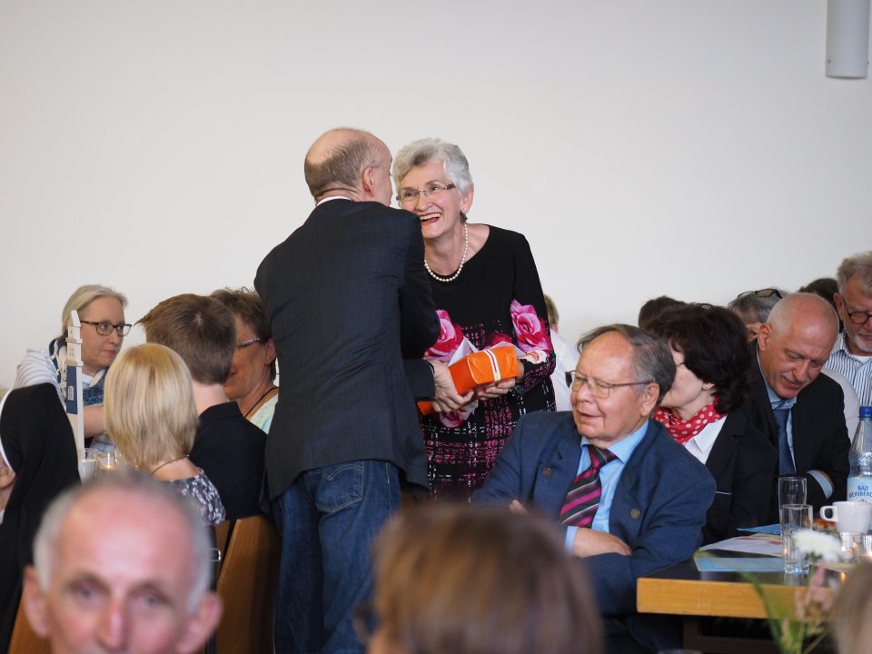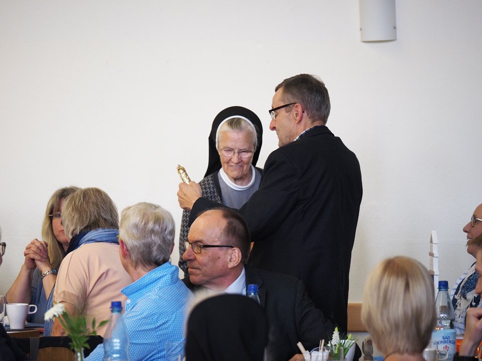 Er dankte ihnen für ihr leidenschaftliches Engagement für die Schule und ihre herzliche Zugewandtheit für alle Schülerinnen und Schüler. Seinem Dank und seinen guten Wünschen für die Zukunft schloss sich auch die ehemalige Schulleiterin, Schwester Maria Thoma Dikow, in einer Grußbotschaft aus Bolivien an. Deren Vorgängerin, Schwester Maria Virgina Schütze, war zur Freude aller aus Geseke angereist, um an dieser Feierstunde teilzunehmen. Dies war für Maria Schmidt und Marika Eggers ein besonderes Geschenk, schließlich war sie vor vielen Jahren deren Klassenlehrerin.