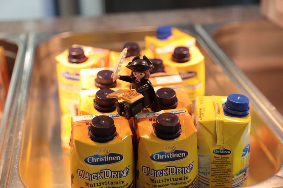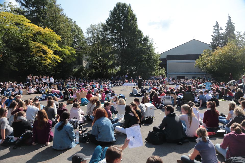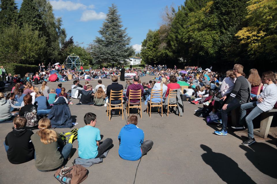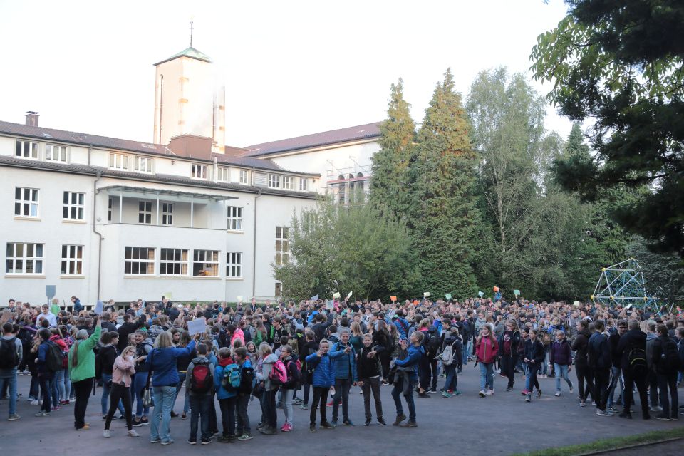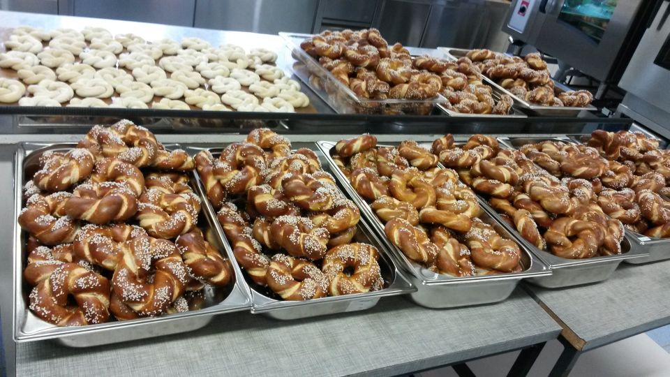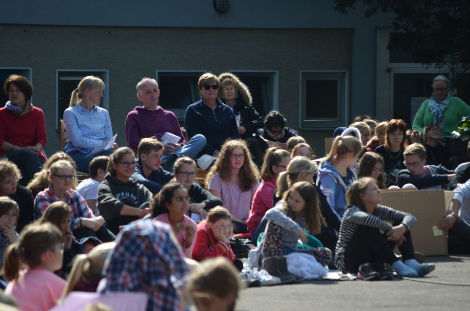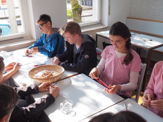 Die Produktion dieser Laugenkronen wurde nicht etwa dem hiesigen Bäcker überlassen, sondern vom Team der Cafeteria übernommen, dem es im Laufe des Vormittags tatsächlich gelang, 1000(!) Laugenkronen zu backen. So konnte am Ende dieses alternativen „Schultages“ die gesamte Schulgemeinde gesättigt und zufrieden nach Hause gehen.