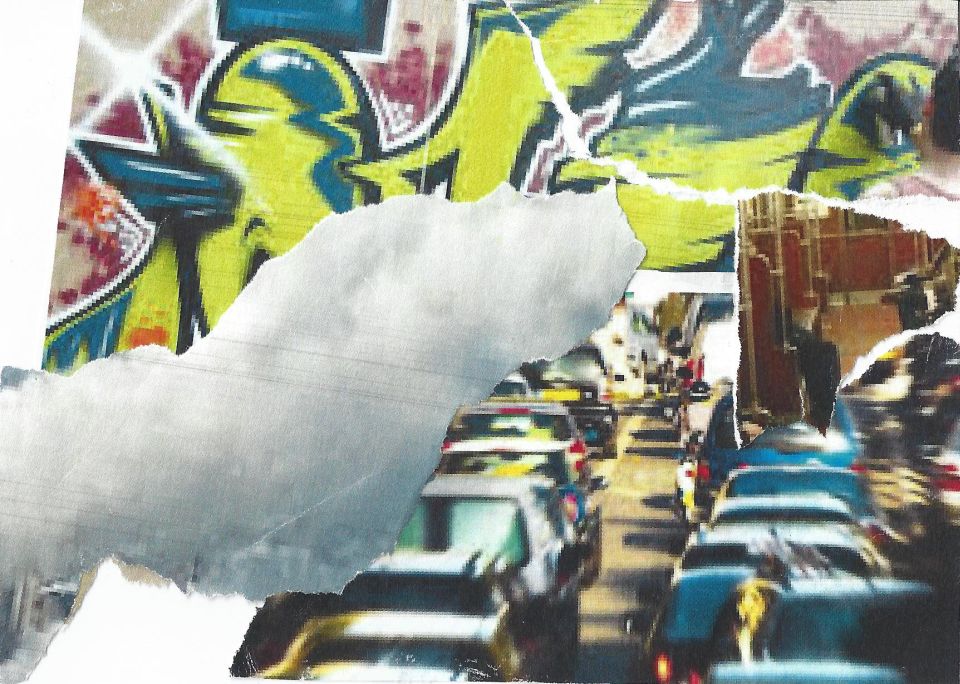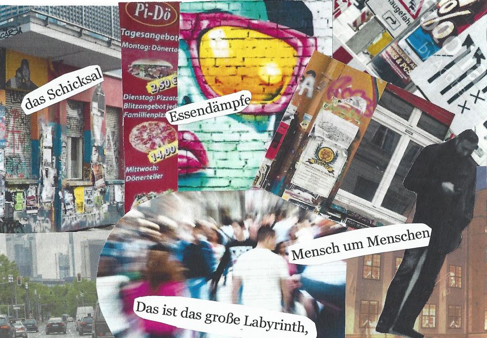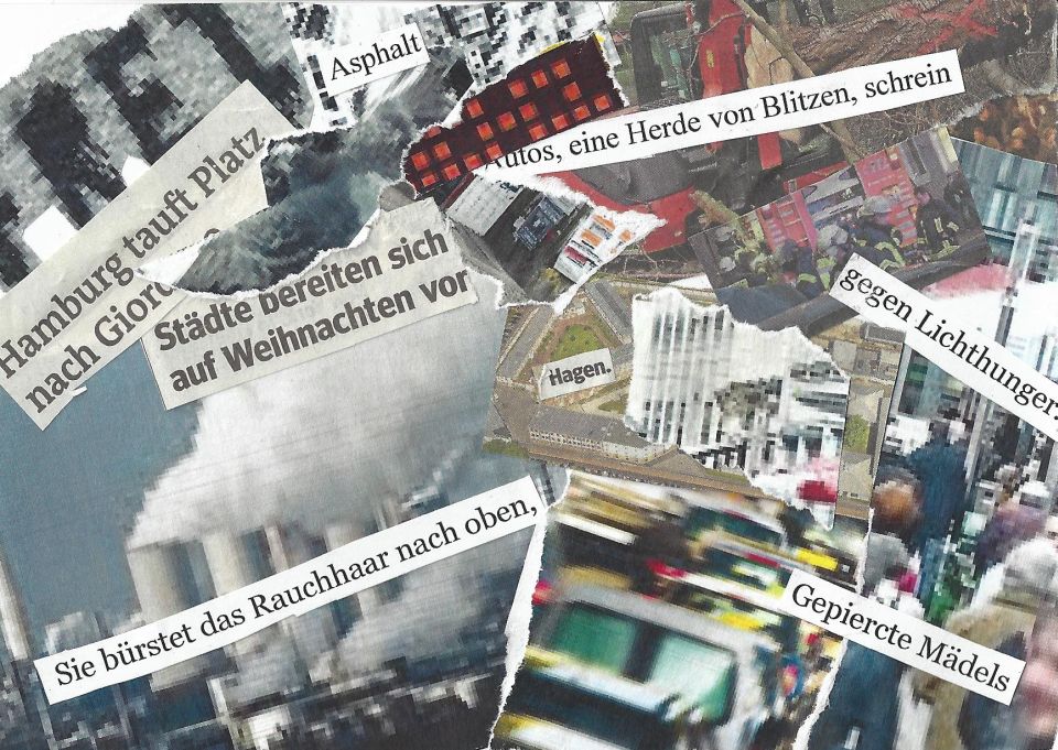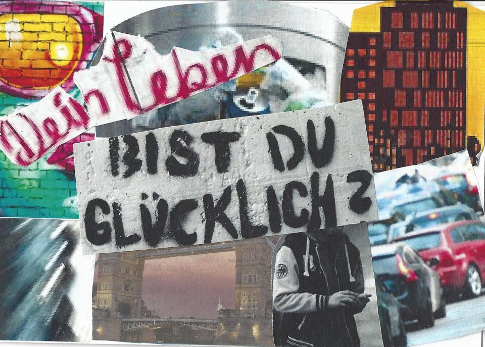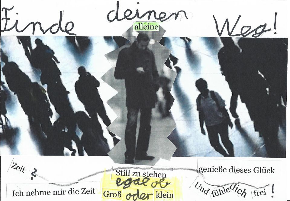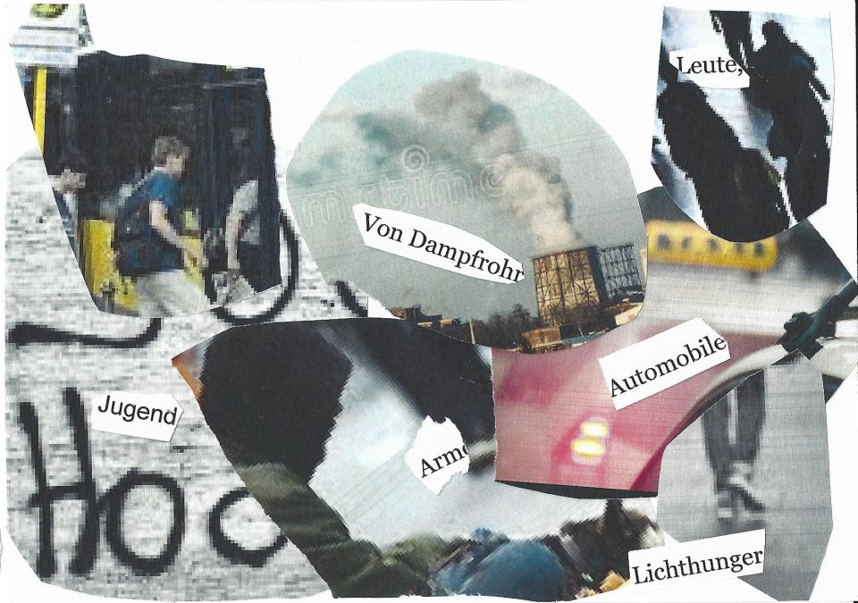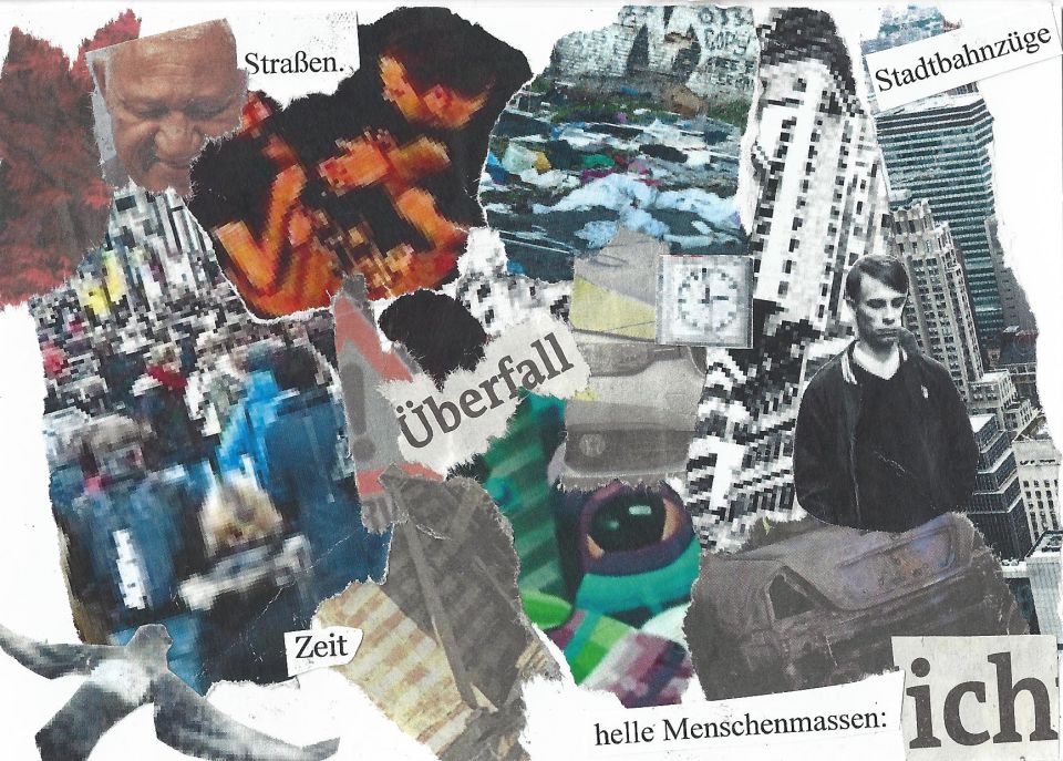 In Anlehnung an die Berliner Ausstellung Arte Postale (Bilderbriefe und Künstlerpostkarten) entstand die Idee der Text-/Bildcollage im Postkartenformat. Das Format – die Postkarte als Anachronismus in unserer schnelllebigen, unverbindlichen Smartphone-Gesellschaft – sollte dabei bewusst einen Kontrapunkt durch die Entschleunigung in der Form setzen, die aber zugleich gesprengt wird durch den Inhalt der Bildbotschaft: Der beschleunigte Mensch in der urbanen, multi-kulturellen Gesellschaft der Moderne.