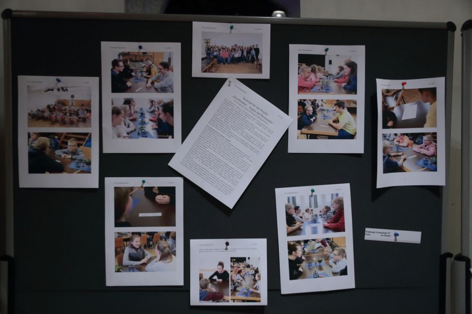 Im Museumsgang vor Beginn der Preisverleihung konnten die eingereichten Videos an bereitgestellten Laptops begutachtet werden. (Foto: C. Scholz/SMMP)Kein Wunder, dass die beiden Schulleiter Gaby Petry („Placida“) und Dr. Eduard Maler (Walburgisgymnasium) mit strahlenden Gesichtern im Publikum saßen, als die Jury (Bürgermeister Martin Wächter, Jugendpfleger Sven Haja sowie das Künstlerpaar Corinna Häußler und Nils Bonk von Einz Design) die Sieger verkündete. Der städtische Jugendpfleger Thomas Zimmermann (neben Irina Rebbe als Schulsozialarbeiterin des „Placida“ und Uschi Schulte-Pieper, Kluse, Organisator der Gedenkveranstaltung) führte als Moderator durch den Abend, der mit einem Museumsgang startete, bei dem die Kunstwerke begutachtet werden konnten.