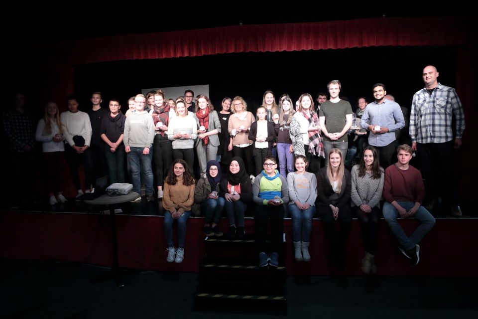 Bei der feierlichen Preisverleihung am Dienstag im „Theater am Ziegelbrand“ erhielten sie die Preise eins bis vier sowie gleich beide Sonderpreise. Die Aktion rahmte die Gedenkveranstaltung zum 9. November in Menden ein.