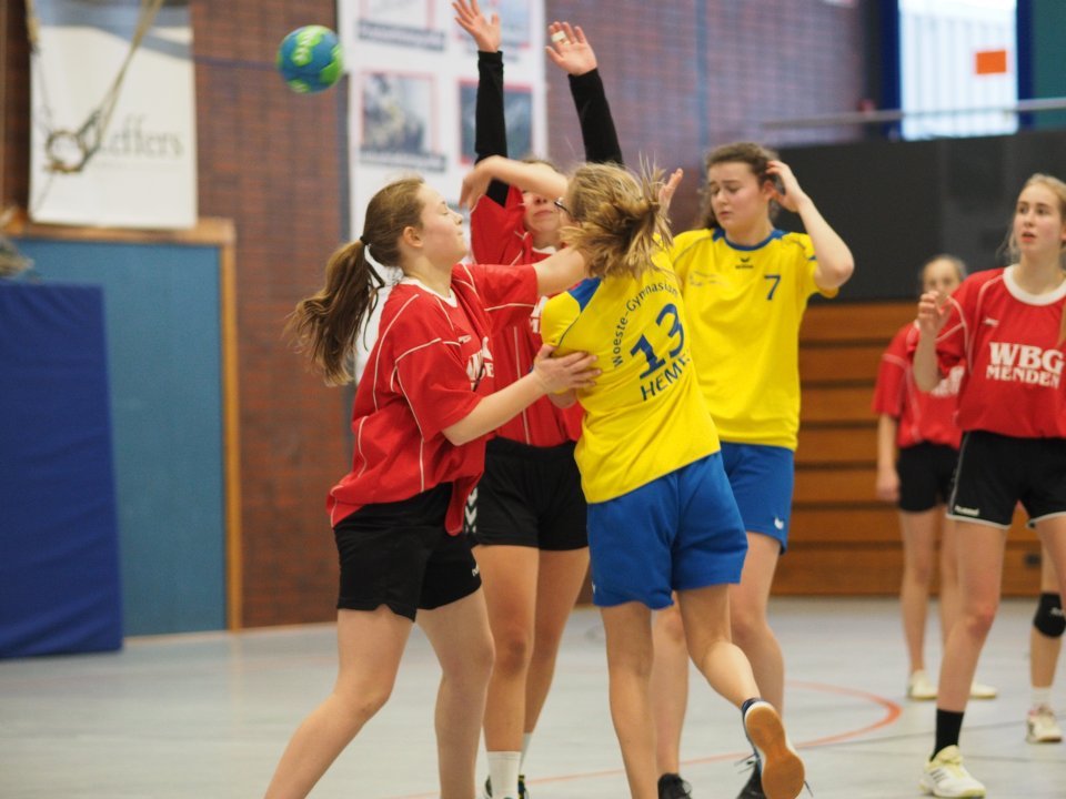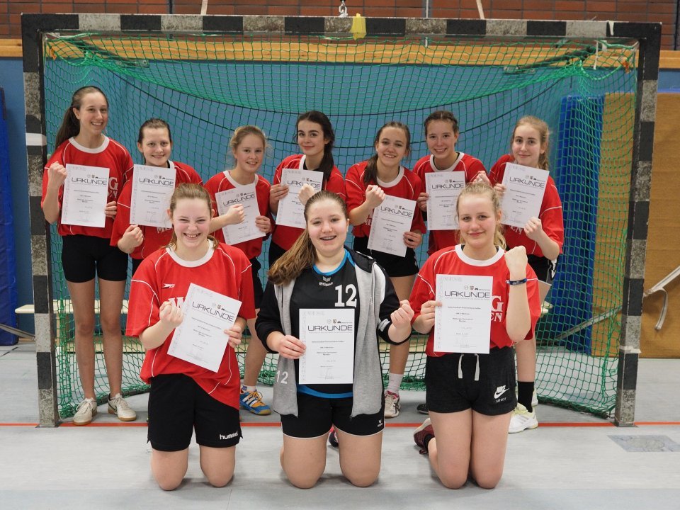 Im Landessportfest der Schulen WK II wurden unsere Schülerinnen souverän Kreismeister. Am Montag, dem 18.12., wurde in der Sporthalle des Städtischen Gymnasiums an der Hönne die Kreismeisterschaft zwischen der Städtischen Realschule Menden, dem Gymnasium an der Stenner, dem Friedrich-Leopold-Woeste-Gymnasium, dem Gymnasium an der Hönne und dem Walburgisgymnasium ermittelt. Gespielt wurde im Modus 2 x 10 min, „Jeder gegen Jeden“. Durch eine geschlossene Mannschaftsleistung konnte man alle Spiele für sich entscheiden.