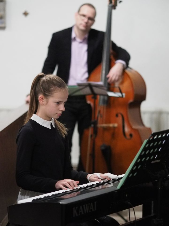 Ergänzt wurden die Gesangsdarbietungen durch solistische Instrumentalvorträge (von der Flöte über Gitarre, Klavier – mit verbundenem Finger! – und Trompete bis zum Baritonhorn war alles vertreten), die ebenso wie der Chor von unserem frischgebackenen Abiturienten Paul Kißmer einfühlsam am Klavier begleitet wurden.
