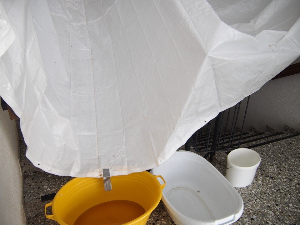 In der Fotogalerie sieht man neben den beschriebenen Dacharbeiten auch noch die intelligente Lösung mittels einer von Frau Fringes besorgten Plane, mit der der Wasserschaden im Treppenhaus des Fachtraktes am vergangenen Wochenende minimiert werden konnte. Dies konnte nur dank der Mitarbeit zahlreicher Lehrerinnen und Lehrer gelingen, die rund um die Uhr einen Schichtdienst eingerichtet hatten, um die immer wieder volllaufenden Badewannen zu leeren. Hierfür noch einmal einen herzlichen Dank im Namen der Schulgemeinde!