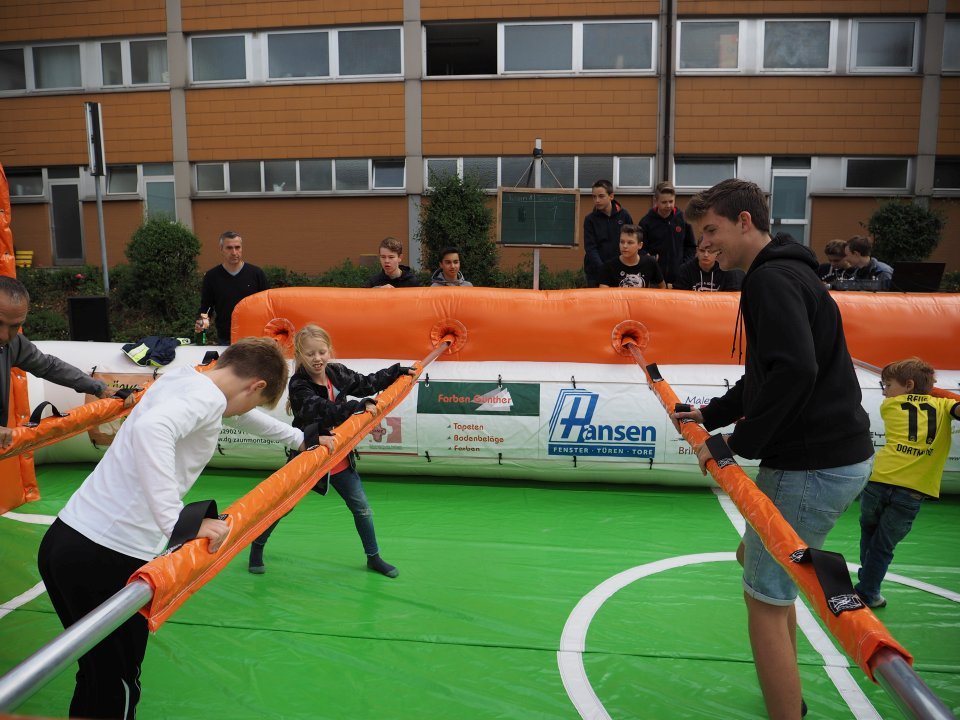 Ein weiteres Highlight war die Tatsache, dass dank des guten, wenn auch etwas kühleren Wetters ein guter Teil der Attraktionen auf dem Schulhof durchgeführt werden konnten. Von hier aus war der Weg zu den Grillwürstchen und den gut gekühlten Getränken nicht weit.