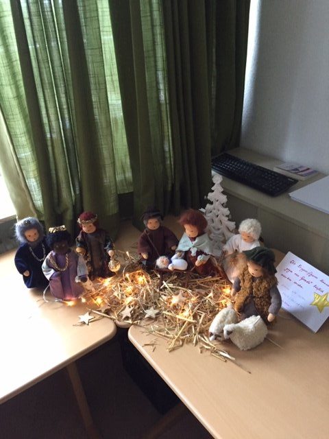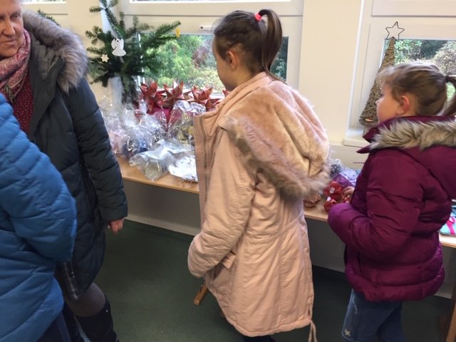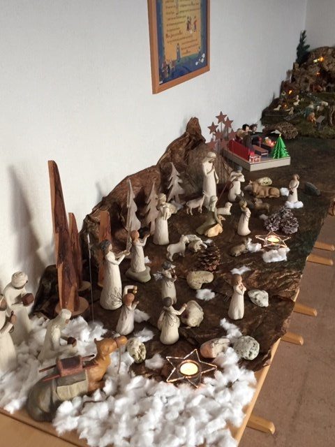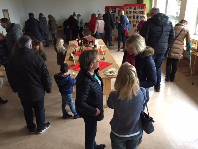 Der Adventsmarkt am ersten Adventssamstag, den die Elternschaft mit großem Engagement organisiert hat, war ein voller Erfolg. Zahlreiche Besucher kamen und fanden eine Riesenauswahl liebevoll hergestellter Artikel vor, von Marmeladen und Likören über handgearbeitete Taschen und Topflappen, gebastelte Weihnachtskarten bis hin zu gemalten Bildern und noch viel mehr – für jeden Geschmack war etwas dabei, sogar eine Krippenausstellung mit über 20 ganz unterschiedlichen Exponaten.