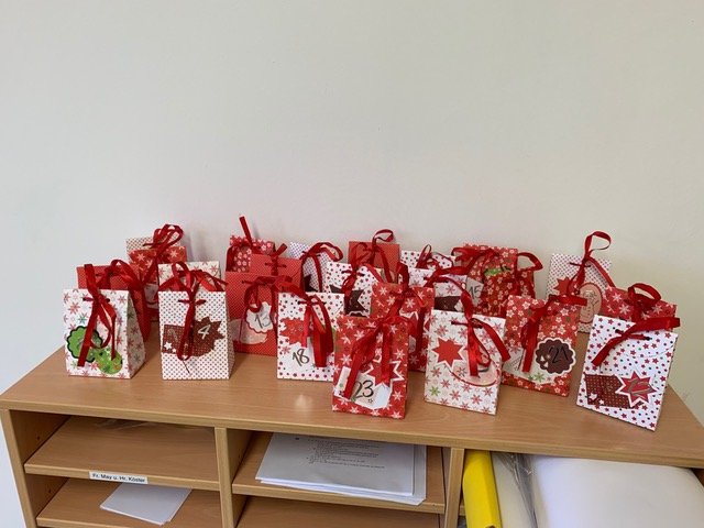 Außerdem hat der „Verein der Freunde und Förderer des Walburgisgymnasiums und der Walburgisrealschule“ in diesem Jahr allen Klassen einen ganz besonderen Adventskalender geschenkt, bei dem mit jedem Türchen, das sich öffnet, etwas Gutes für Menschen in Not getan wird. Deshalb heißt dieser Spendenkalender „24guteTaten-Kalender“; zum Beispiel erhält ein unterernährtes Kind in Nigeria eine warme Mahlzeit oder in Äthiopien gibt es 1,5 Tage sauberes Trinkwasser für eine Familie. Danke für diese schönen Aktionen.