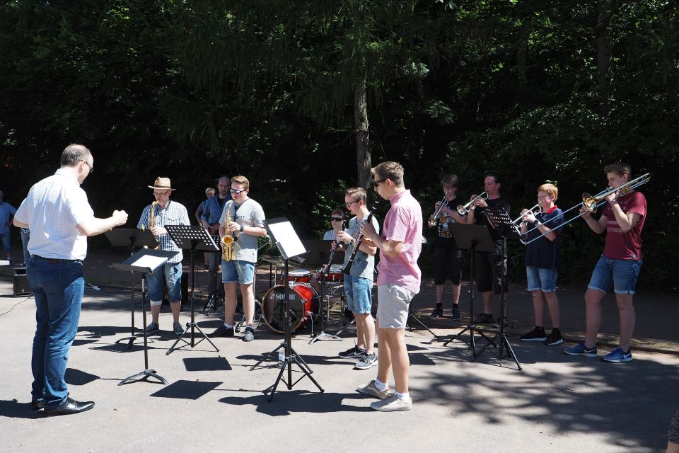 Auf eine kurze Ansprache von Herrn Dr. Maler folgte eine kurze Sequenz festlicher Blasmusik, die von Teilen unserer BigBand und weiteren Gastmusikern unter der Leitung von Herrn Hagedorn zum Besten gegeben wurde.