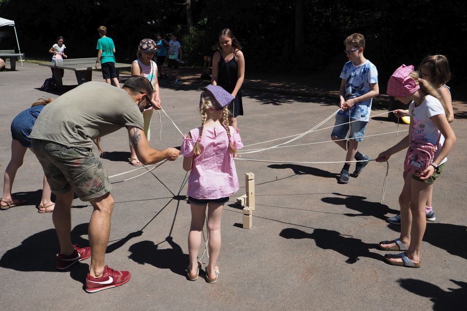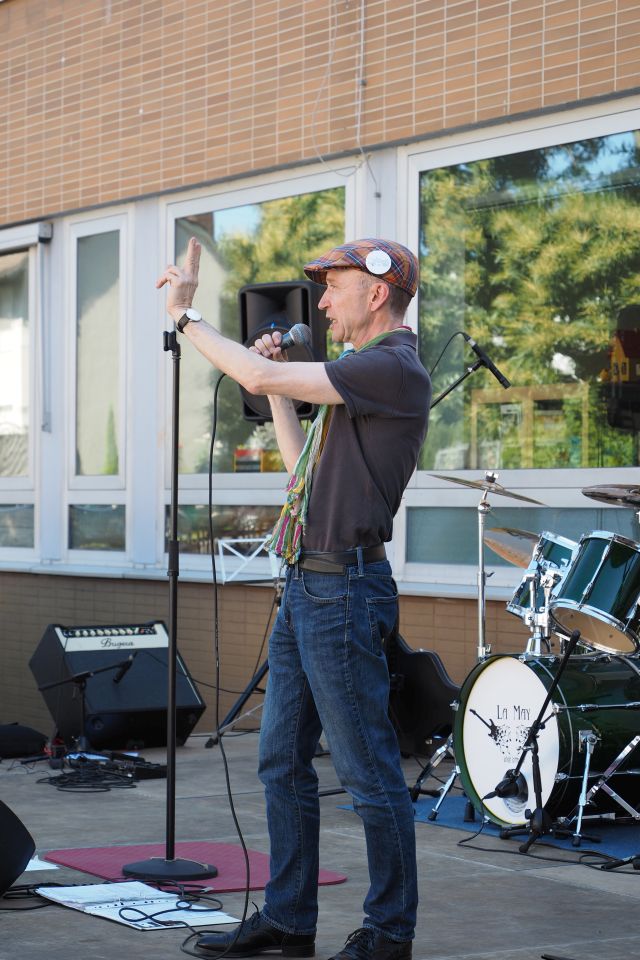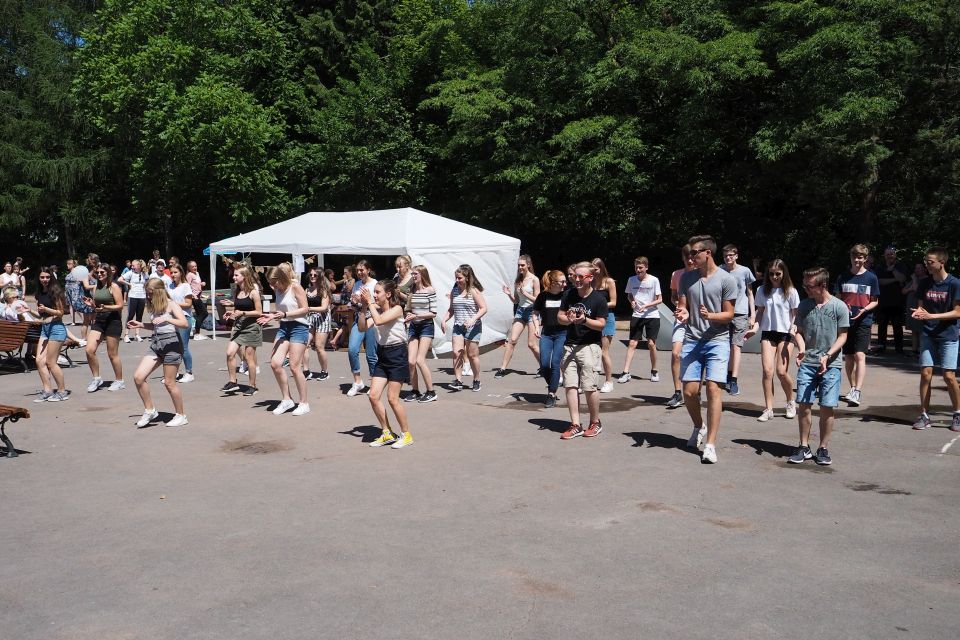 Während es auf dem Schulhof in der Hauptsache Mitmachaktionen gab, die neben Basteln auch Bewegungs- und Koordinationsspiele beinhalteten, wurden die interaktiven Beamer und großflächigen Panels ausnahmsweise einmal für Videospiele genutzt. Sehr gut angenommen wurden aber auch kulinarische und geistige Produkte. So gab es neben selber hergestellten Crepes und Popcorn und den obligatorischen Verpflegungsstationen wie Bratwurststand und Cafeteria die Führung durch den Park mit einem selber verfassten Audioguide unter der Regie von Frau Zeuner, oder die selber produzierte CD der Philosophie-AG von Frau Spieker, die gegen eine Spende erworben werden konnte.