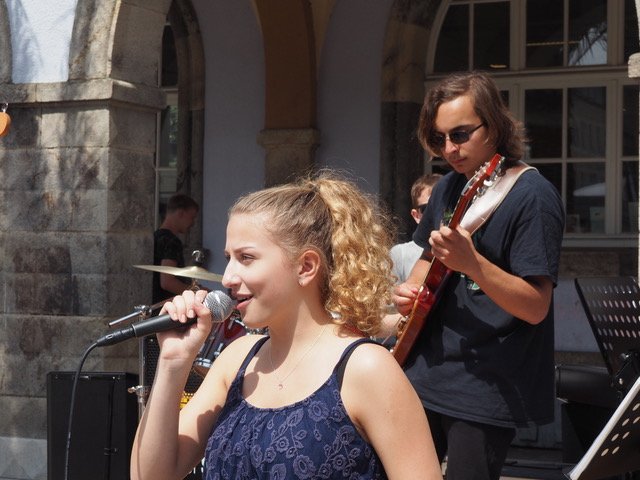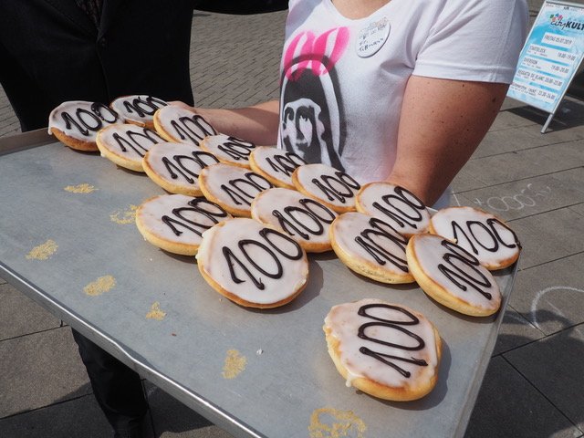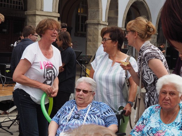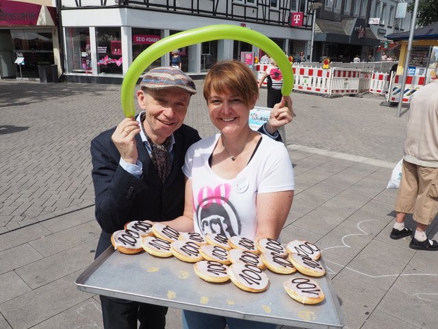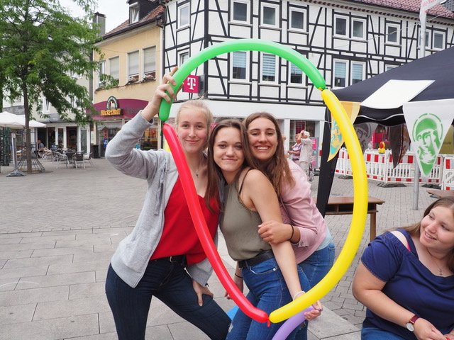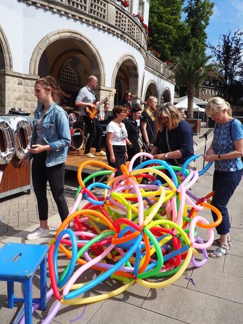 An unserem Stand sorgte die Soulband unserer Schule für gute Stimmung und lud zum Verweilen ein, Zuhörerinnen und Zuhörer konnten sich mit kostenlosen Amerikanern (hübsch verziert mit einer 100) stärken und an einer Kunstaktion mit Luftballons zum Thema „Wir schaffen Verbindung“ beteiligen. Speziell durch diese Aktion haben sich zahlreiche Möglichkeiten ergeben, miteinander ins Gespräch zu kommen und sich auszutauschen.