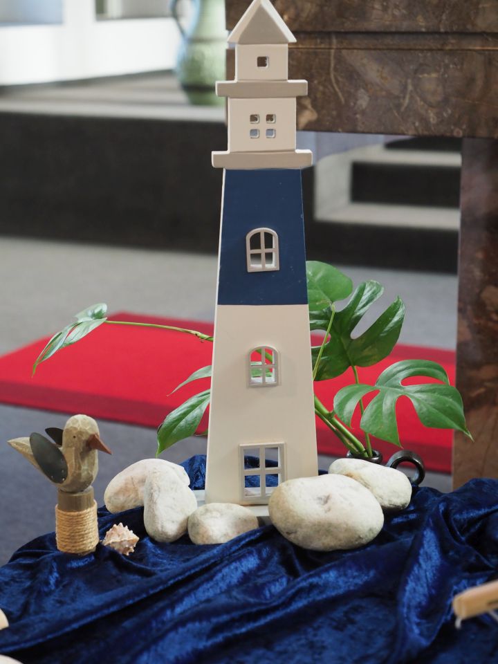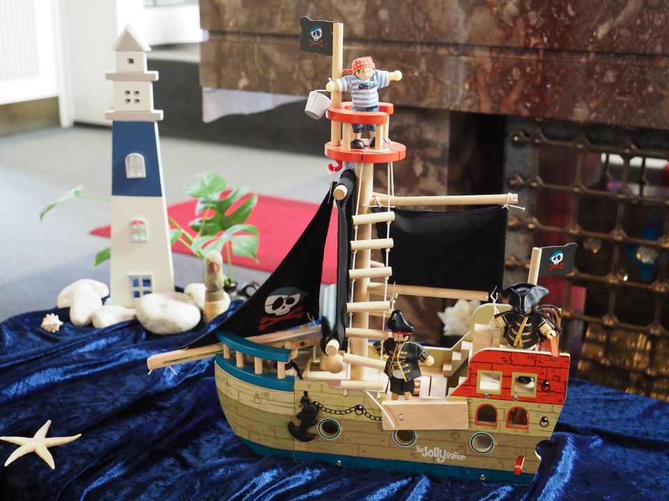 Frau Fiedler und Frau Bödingmeier begrüßten 127 neue Schüler und Schülerinnen mit ihren Eltern und nahmen sie mit auf eine gedankliche Reise an Bord eines Schiffes, das sich Schule nennt. Mit viel Liebe zum Detail hatten Schwester Raphaela Maria und Schwester Burkhardis eine Seelandschaft mit Piratenschiff aufgebaut, das die Fantasie der zukünftigen Schiffsbesatzung zu beflügeln vermochte: sich als verschworene Gemeinschaft auf den Weg machen, Seite an Seite das Klassenschiff auf Kurs halten, Gefahren trotzen und mit den Klassenlehrern als Kapitäne das Ziel nicht aus den Augen verlieren …