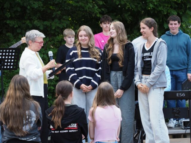 Im abschließenden siebten Block ehrte Frau Fiedler die folgenden Teilnehmerinnen am Wettbewerb „Schule gegen Antisemitismus“ stellvertretend für den gesamten evangelischen Religionskurs der Jahrgangsstufe 10: