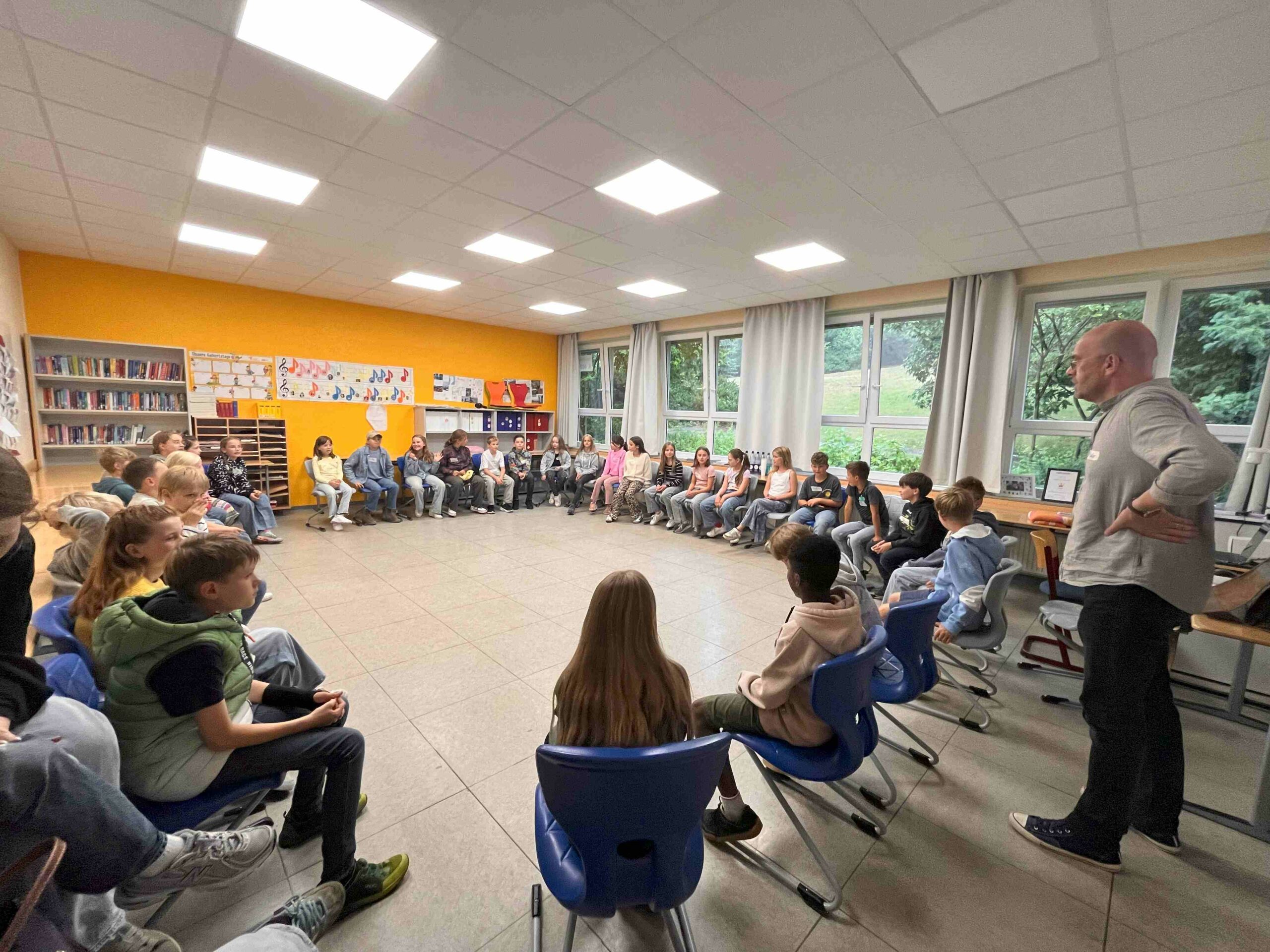 Am vergangenen Montag öffnete unsere Aula ihre Türen für ein ganz besonderes Ereignis: den traditionellen Kennenlernnachmittag für unsere zukünftigen fünften Klassen. In gespannter Erwartung versammelten sich die neuen Schülerinnen und Schüler gemeinsam mit ihren Familien, denn an diesem Nachmittag ging es um die brennenden Fragen „Wer wird meine Klassenlehrerin oder mein Klassenlehrer?“, „Mit wem komme ich in eine Klasse?“ und „Wie fühlt sich meine neue Klassengemeinschaft an?“.