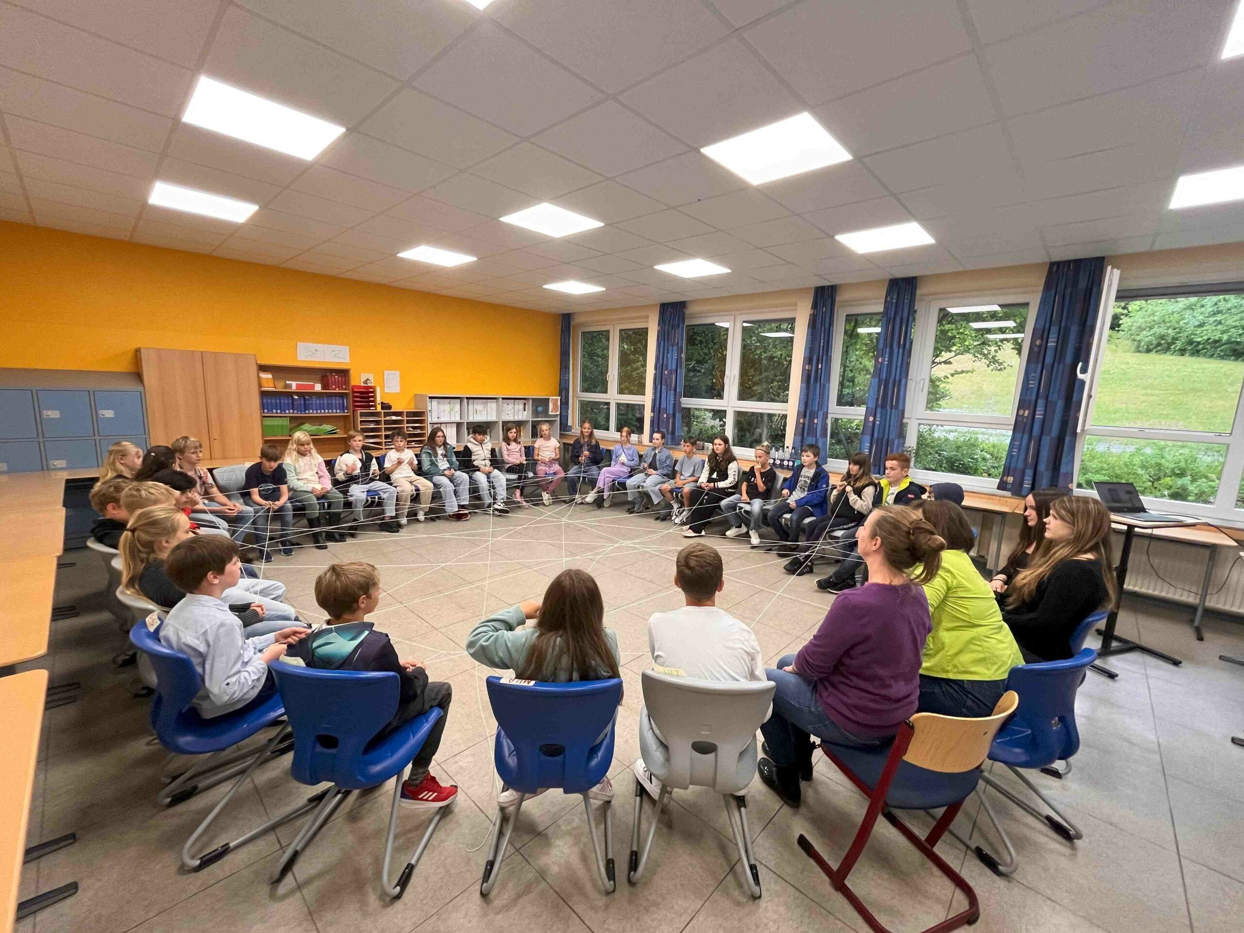 Anschließend begaben sich die Schülerinnen und Schüler klassenweise in die Räume der jetzigen fünften Klassen. In den folgenden eineinhalb Stunden konnten sich die Kinder, die aus unterschiedlichen Grundschulen kommen, in kleinen Spielen und ersten Gesprächen behutsam kennenlernen und erste Erfahrungen in der neuen Gemeinschaft machen. Mit dabei waren auch die Patinnen aus aus den künftigen Jahrgängen 10 und 11, die die Schülerinnen und Schüler in der Phase des Ankommens begleiten und unterstützen werden.