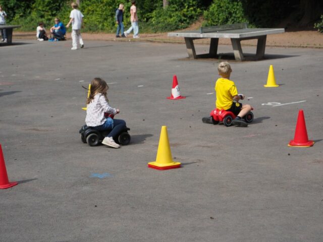 Ob Wasserbombenzielwurf auf Lehrerfotos, ein Bobbycar-Parcours, sportliche Mini-Wettkämpfe oder kreative Bastelstände – für alle war etwas dabei. Wer lieber stöberte oder schmökern wollte, wurde beim Bücherbasar oder am Trödelstand fündig. Andere ließen sich Airbrush-Tattoos auftragen oder schmückten sich mit selbstgemachten Armbändern. In der Aula begeisterten kleine Tanzaufführungen und ein „Wintermärchen“ das Publikum.