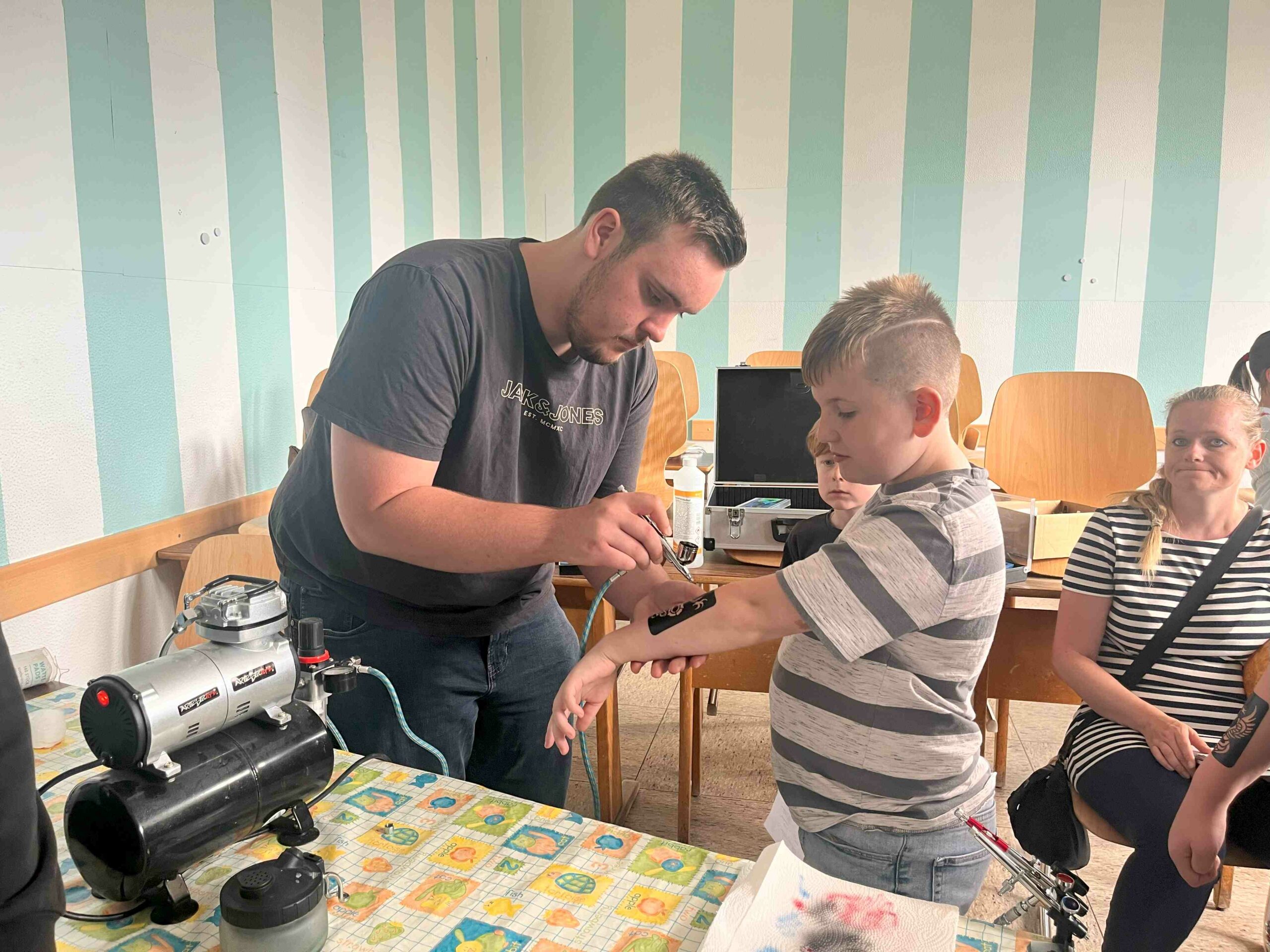 Ob Wasserbombenzielwurf auf Lehrerfotos, ein Bobbycar-Parcours, sportliche Mini-Wettkämpfe oder kreative Bastelstände – für alle war etwas dabei. Wer lieber stöberte oder schmökern wollte, wurde beim Bücherbasar oder am Trödelstand fündig. Andere ließen sich Airbrush-Tattoos auftragen oder schmückten sich mit selbstgemachten Armbändern. In der Aula begeisterten kleine Tanzaufführungen und ein „Wintermärchen“ das Publikum.