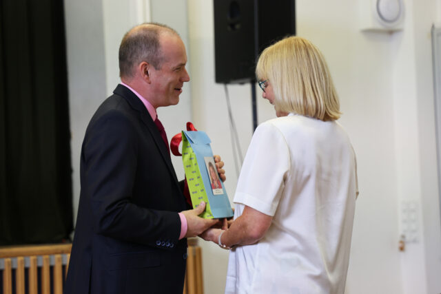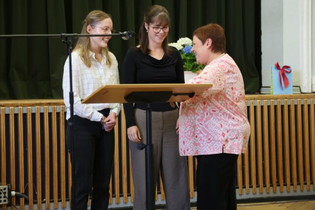 Herr Dr. Bornhoff betonte, dass Frau Schmidt mit ihrer offenen und direkten Art immer ein verbindendes Element innerhalb des Kollegiums, aber auch im Umgang mit Schülern und Eltern gewesen sei.