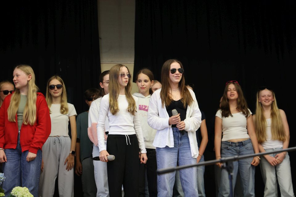 Die Verabschiedungsfeier wurde beendet durch einen kurzen Redebeitrag der Schülersprecher, die Frau Schmidt und Frau Schulte im Namen der Schülerschaft verabschiedeten und sich für ihren langjährigen Dienst am WBG mit jeweils einem Blumenstrauß bedankten.