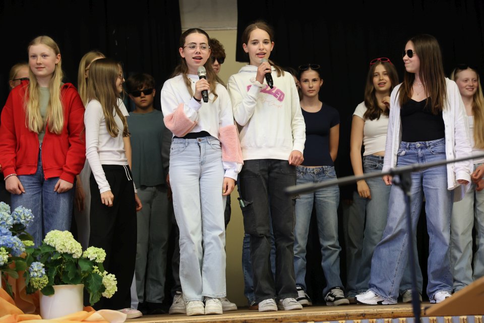 Am vergangenen Donnerstag endete der Unterricht nach der vierten Stunde. Danach versammelte sich die Schulgemeinschaft (bestehend aus dem aktiven Kollegium, ehemaligen Weggefährten, Schülerinnen und Schülern, weiteren Mitarbeiterinnen und Mitarbeitern sowie Angehörigen und Freunden) in der Aula, um zwei verdiente Kolleginnen in den Ruhestand zu verabschieden. Sogar Schwester Raphaela Maria, die am gleichen Tag ihren 88. Geburtstag feierte, und Schwester Heriburg hatten den Weg aus Bestwig auf sich genommen, um Frau Schmidt und Frau Schulte Lebewohl zu sagen und ihnen für ihren weiteren Lebensweg alles Gute zu wünschen.