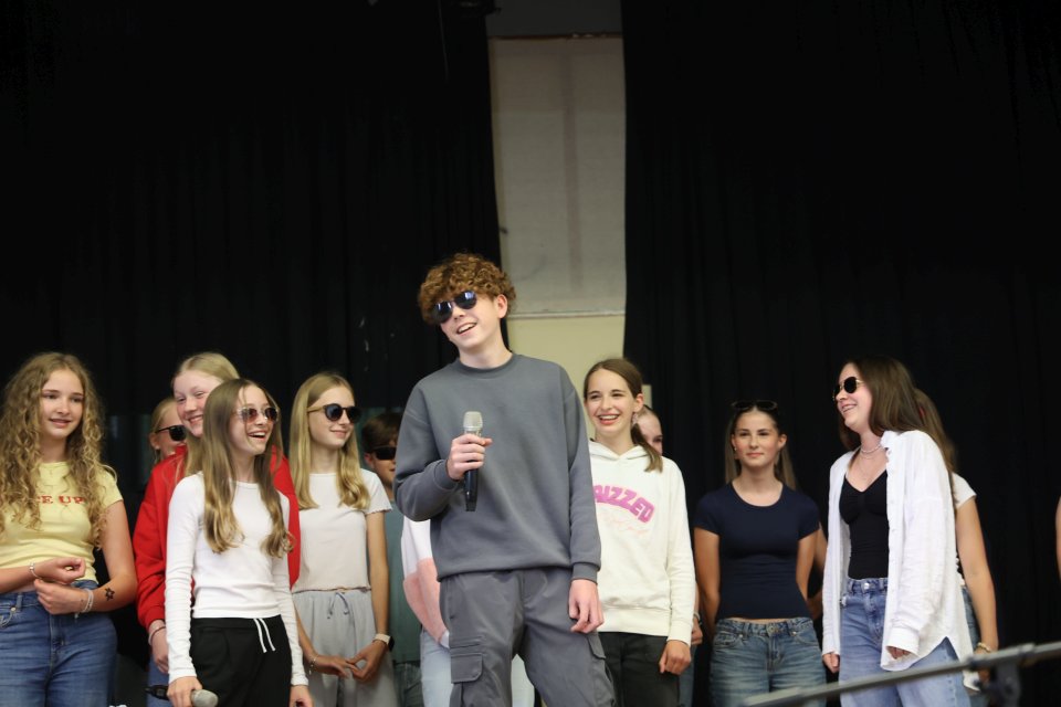 Im Anschluss bedankte sich die Klasse 7c mit einem selbstgeschriebenen Rap. Schülerinnen und Schüler des aktuellen Abiturjahrgangs bedankten sich bei Frau Schmidt für ihre gemeinsamen Aktionen (z.B. das regelmäßige Pizzaessen) im Rahmen des zu einer Tradition gewordenen gemeinsamen Bücherstempelns, die ihnen immer große Freude bereitet hatten.