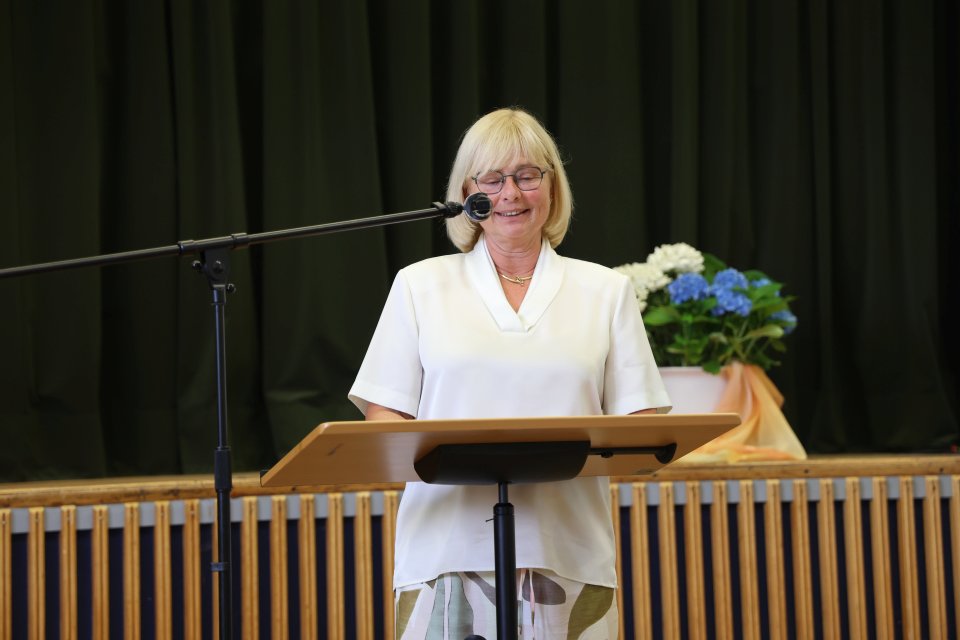 Zum Abschluss schloss sich die Schulpflegschaftsvorsitzende Frau Kouros-Ntontis den Dankesworten ihrer Vorredner an und verabschiedete die beiden zukünftigen Ruheständlerinnen in ihrer unnachahmlich herzlichen Art.