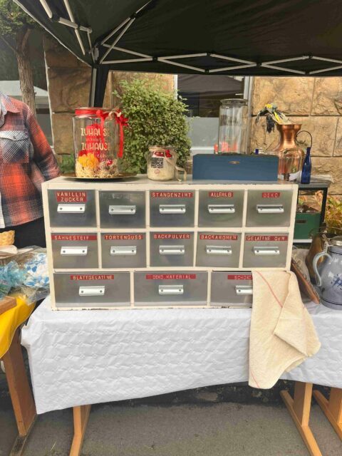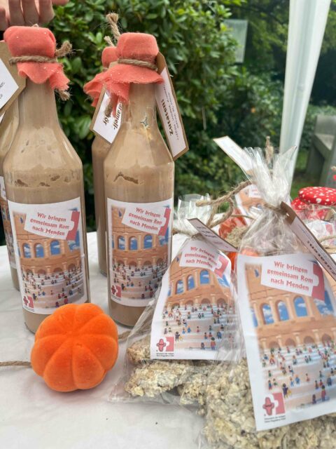 An den Ständen selbst konnten die Besucherinnen und Besucher eine beeindruckende Auswahl an selbstgemachten Waren entdecken. Dazu gehörten Schutzengel aus Hufeisen, handgefertigte Textilien wie Kissenhüllen, Mützen und Schals, köstliche Marmeladen, liebevoll arrangierte Blumen und dekorative Einzelstücke. Auf großes Interesse stießen zudem alte – teils historische – Materialien aus der ehemaligen Schulküche, zu denen Frau Betken die ein oder andere interessante Geschichte erzählen konnte.