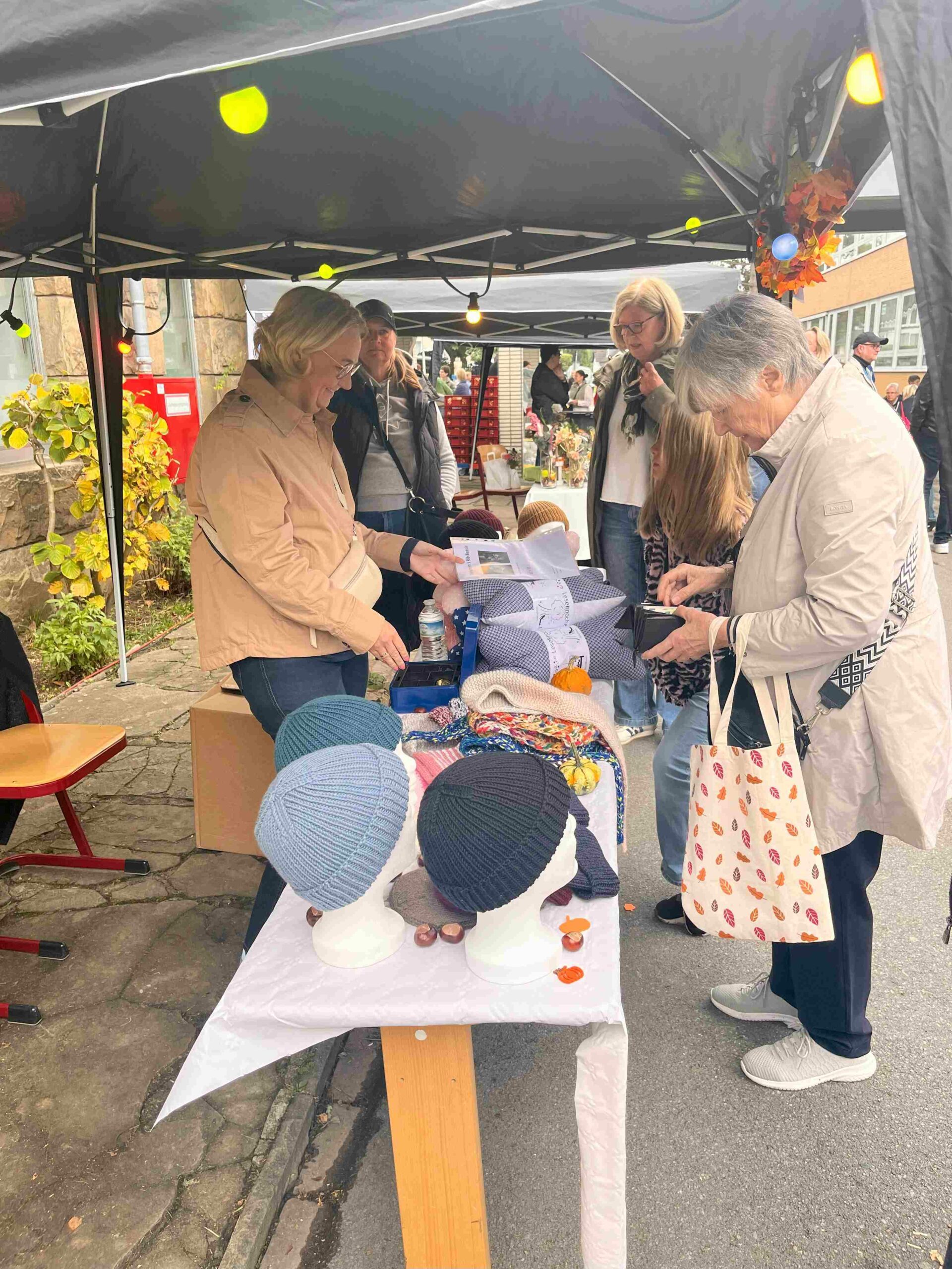 An den Ständen selbst konnten die Besucherinnen und Besucher eine beeindruckende Auswahl an selbstgemachten Waren entdecken. Dazu gehörten Schutzengel aus Hufeisen, handgefertigte Textilien wie Kissenhüllen, Mützen und Schals, köstliche Marmeladen, liebevoll arrangierte Blumen und dekorative Einzelstücke. Auf großes Interesse stießen zudem alte – teils historische – Materialien aus der ehemaligen Schulküche, zu denen Frau Betken die ein oder andere interessante Geschichte erzählen konnte.