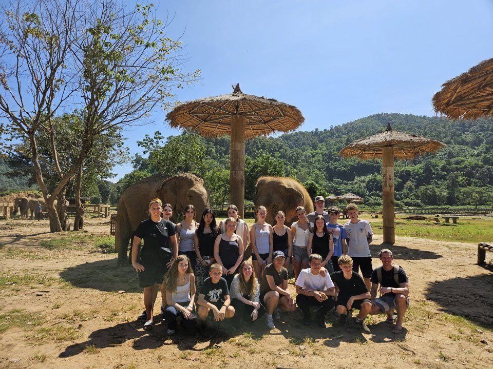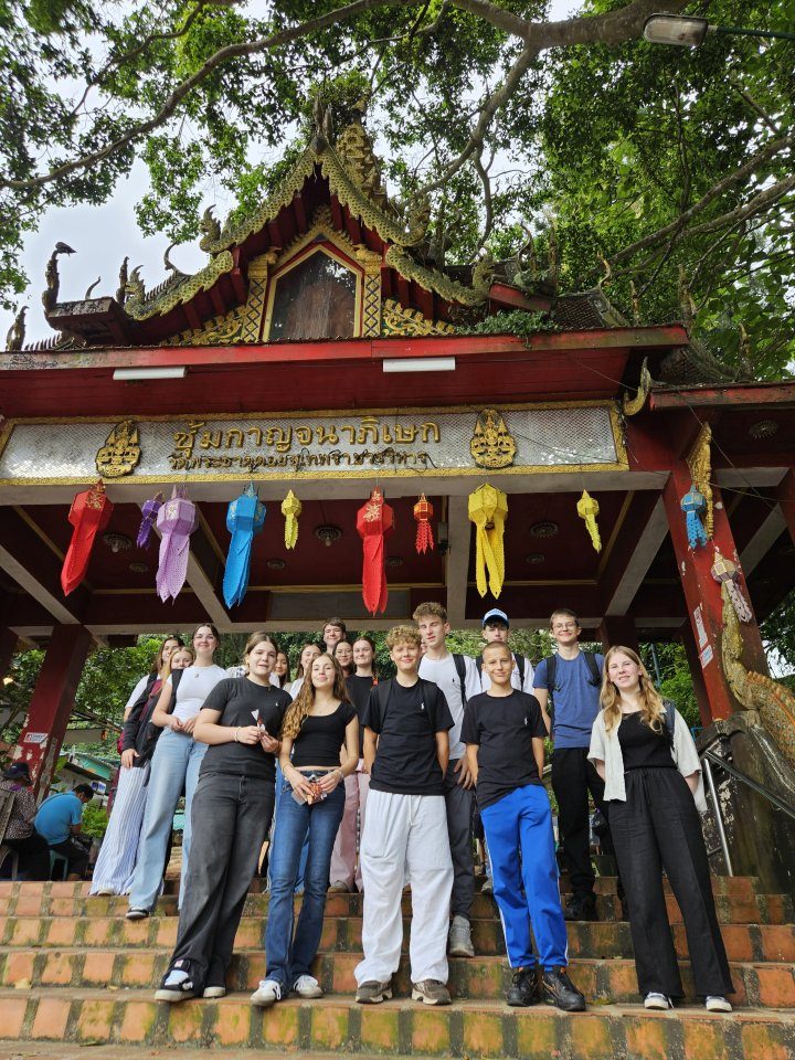 „Am 21.10. machten wir uns mit 15 Schülerinnen und Schülern aus den Jahrgangsstufen 8-10 auf den Weg nach Chiang Mai in Thailand. Nachdem wir im letzten Schuljahr 6 Schülerinnen und Schüler der Christlich Deutschen Schule Chiang Mai über einen längeren Zeitraum begrüßen durften, stand nun der Gegenbesuch auf dem Programm. Insgesamt lag eine Reisezeit von ca. 22 Stunden vor uns. Los ging es mit dem Bus ab Menden zum Flughafen nach Frankfurt. Nach einem etwas turbulenten Nachtflug landeten wir gut gelaunt in Bangkok und schließlich ging es nach einer kurzen Wartezeit weiter mit dem Flieger nach Chiang Mai.