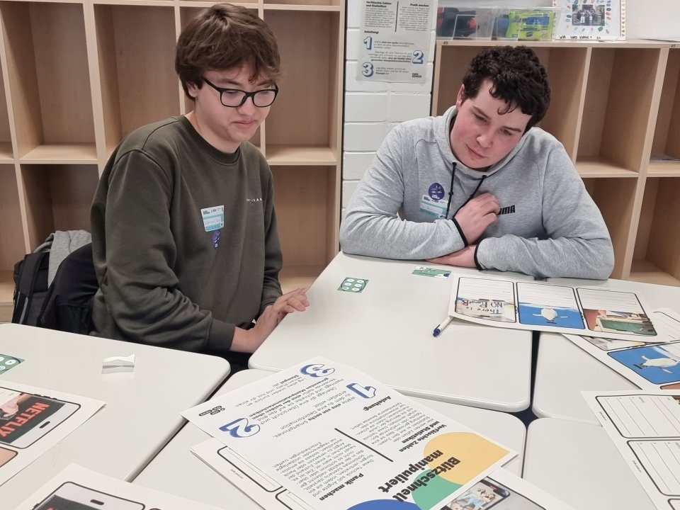 Die Medienscouts sind Schülerinnen und Schüler, die ihren Mitschülerinnen und Schülern bei Problemen und Fragen in ihrem digitalen Alltag zur Seite stehen. Darüber hinaus führen die Medienscouts Schulungen zu speziellen Themen wie der Abwehr von sexuellen Übergriffen im Internet oder dem Umgang mit Cybermobbing durch. Das Engagement der Medienscouts ist ehrenamtlich. An unseren Schulen können sich Schülerinnen und Schüler ab Jahrgangsstufe 8 einmal wöchentlich in AG-Form oder innerhalb des Sternstunden-Angebots durch Frau May ausbilden lassen. Anschließend führen sie Workshops für ihre jüngeren Mitschülerinnen und Mitschüler durch. Das Angebot folgt damit dem Peer-to-Peer-Ansatz und setzt auf das spezielle Vertrauensverhältnis zwischen Gleichaltrigen. Sie übernehmen dadurch an ihrer Schule eine zentrale Rolle in der Vermittlung von Medienkompetenz. Zuletzt hat ein Teil der Medienscouts an einem von der Initiative „Use the News“ organisierten Newscamp zum Thema „Nachrichtenkompetenz“ teilgenommen. Die Veranstaltung fand vor den Osterferien an der Gesamtschule in Menden statt und bot den Medienscouts vormittags ein breites Angebot mit Workshops, Gesprächen und interaktiven Stationen, um sich mit Fake News, KI und Journalismus auseinanderzusetzen. Nachmittags wurde das Programm für die Lehrkräfte fortgesetzt, sodass sich unsere Medienbeauftragte Frau Sickmann mit der praktischen Umsetzung der Themen im Unterricht auseinandersetzen konnte. Der Tag hat noch einmal mehr deutlich gemacht, wie wichtig es ist, die Schülerinnen und Schüler darin zu schulen, sich im Dschungel der Informationen im Netz zurechtzufinden, um dort Wahrheit von Lüge unterscheiden zu können.