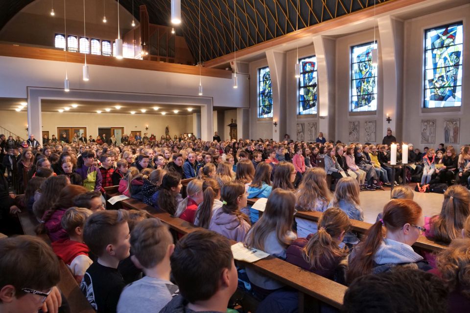 Danach verbrachten die verschiedenen Jahrgangsstufen den Walburgatag auf traditionelle Weise: So führte zum Beispiel die Jahrgangsstufe 7 ein Sportfest durch (siehe Foto), der Jahrgang 8 ging geschlossen ins Mendener Kino, um dort den Film „Wunder“ anzusehen. Im Lehrerzimmer gab es vom Schulträger gestiftete Berliner, so dass am Ende des Tages jeder ein besonderes Erlebnis mit nach Hause nehmen durfte.